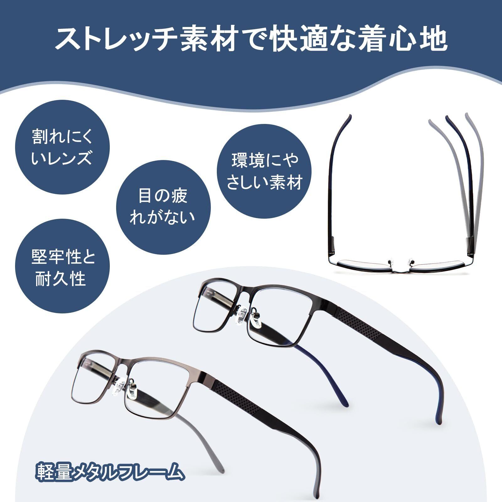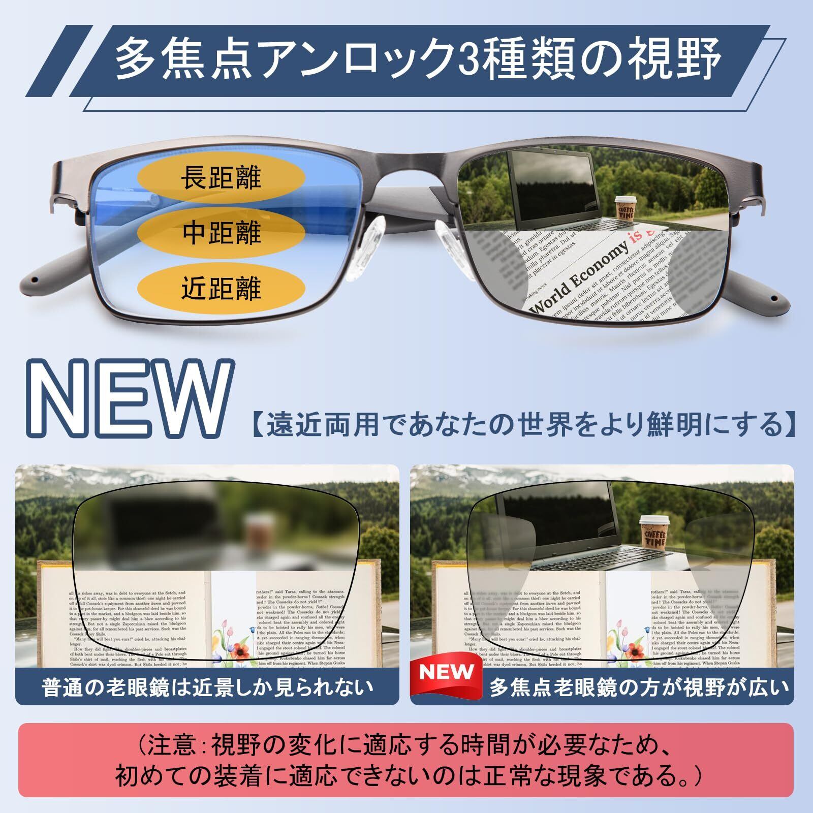 【2022最新】老眼鏡 累進多焦点 度数調整付き メガネ 遠近両用 老眼鏡 ブルーライトカット UVカット メンズ おしゃれ 高級眼鏡 超軽 快適 ボックス はんわく HD リーディンググラス メタルフレーム眼鏡 1.5 2.0 2.5 3.0