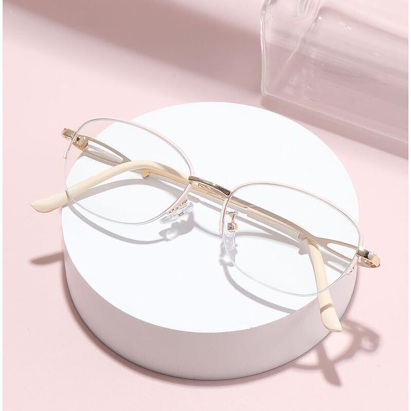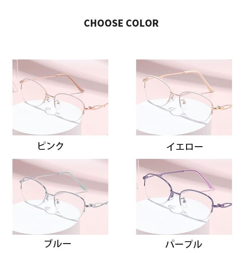 【4色展開 & 半フレームで快適 老眼鏡】人気のシルバー、ピンク、ホワイト、パープルの4色展開!シンプルな半フレームデザインは視界を遮らず、掛け心地もスッキリ軽快。お好みやコーディネートに合わせてお選びいただけます【メタルフレームでスリム&スタイリッシュ老眼鏡】上品なメタルフレーム(半フレーム)が大人の女性にぴったり。細めのフレームと透かし彫りテンプルが相まって、軽量化はもちろん、耳への負担も軽減します.顔馴染み良くスマートな印象に. 見た目も気になる方へおすすめです【老眼鏡 レディース】メタル素材&樹脂レンズ (IPめっき技術から作られ、色あせない)樹脂レンズ、多層コーティングは損傷しにくい;明確で明るい視野を確保するための高い可視光透過率;ブルーライト最大63%カット、紫外線99%カット.パソコンやスマホ、LED照明から発せられるブルーライトを効果的にカット。デジタル機器使用時の目の疲れや乾きを軽減し、快適な視界をサポートします【日常使いに最適なデザインと機能】仕事中、読書、手芸、スマホ閲覧など、日常の様々なシーンで活躍。ブルーライトカット機能に加え、快適な掛け心地と上質な見た目を兼ね備えた、実用的でおしゃれな一本です【高品質半フレームメガネ】耐衝撃性、耐摩耗性、耐久性、壊れにくさなどの利点があります。メガネをかけ慣れていない方でも違和感なくつけられます。おしゃれ #メガネ #結婚 #記念日 #誕生日 #お祝い #母の日 #父の日 #敬老の日 #ギフト #プレゼント
