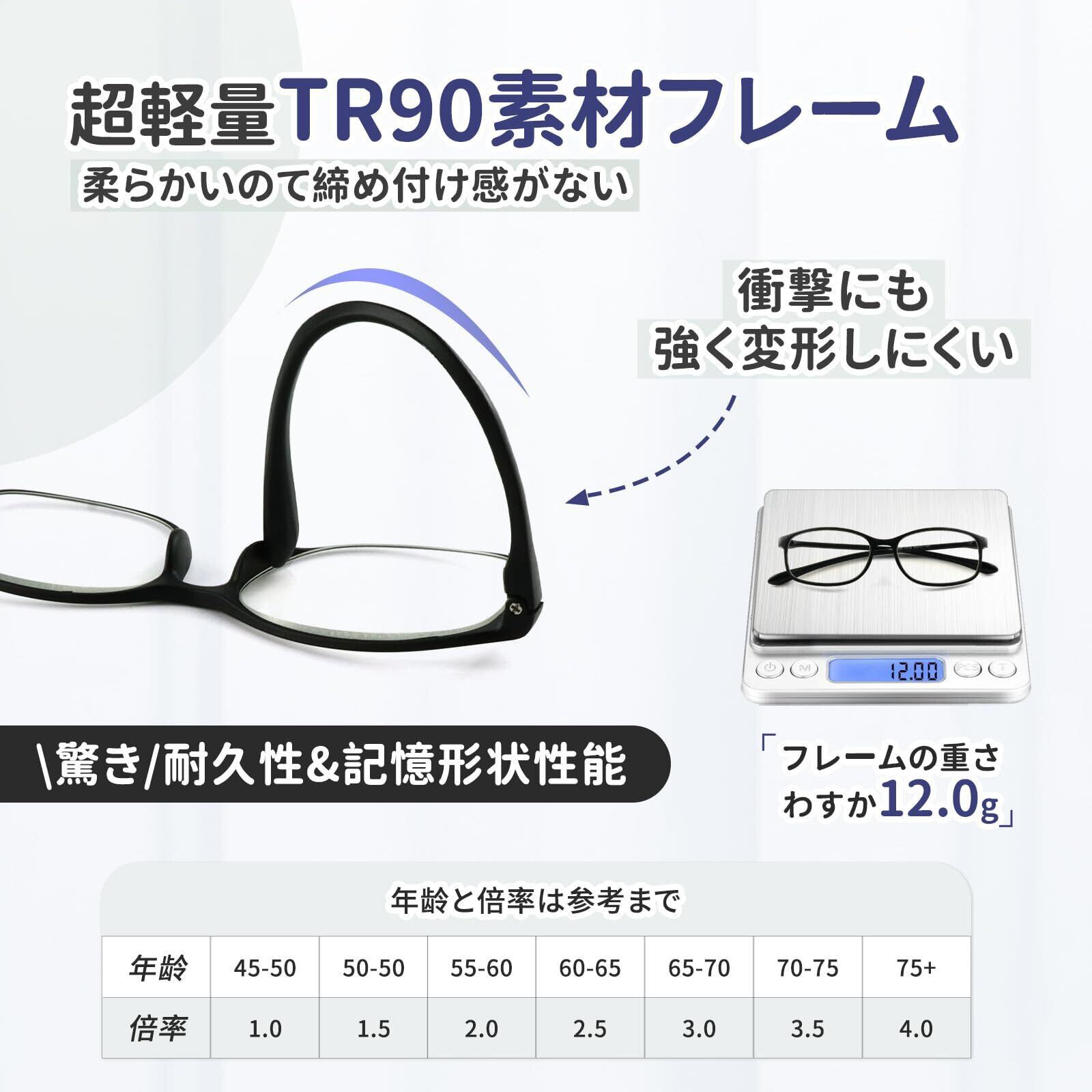 老眼鏡 おしゃれ 軽量形状記憶 フレーム ウェリントンフレーム老眼鏡 つや消しの質感 老眼用メガネ レディース メンズ ブルーライトカット リーディンググラス