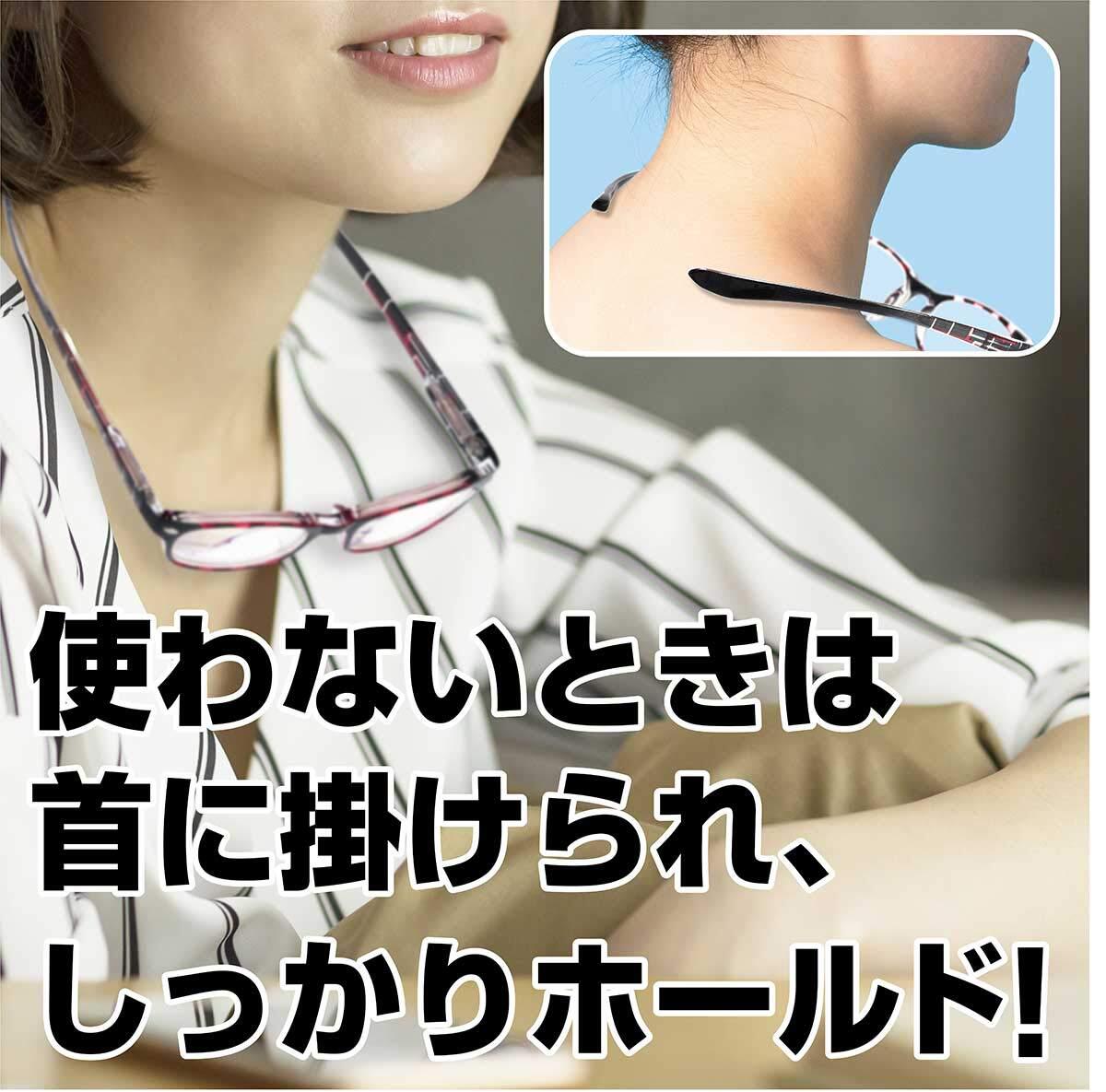 【老眼鏡の「面倒」を解決】つる(テンプル)が長いので、使わない時は首に掛けられます。収納の煩わしさがなくなります。メガネを外した時、わざわざ机に置いたり、カバンや胸ポケットに入れたりせず、首にかけていただけます。老眼鏡を持ち歩くことなく、首に掛けたまま移動でき、置き忘れる心配がなくなります。移動先で必要になってもすぐにお使いいただけます。
