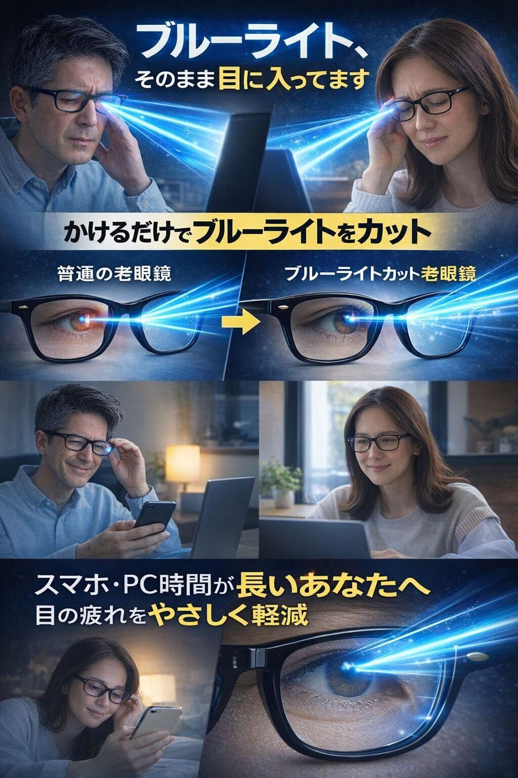 お手元をくっきり見せるだけでなく、UV・ブルーライトから目を守ってくれる!!スマホ操作、PC作業にピッタリ!!