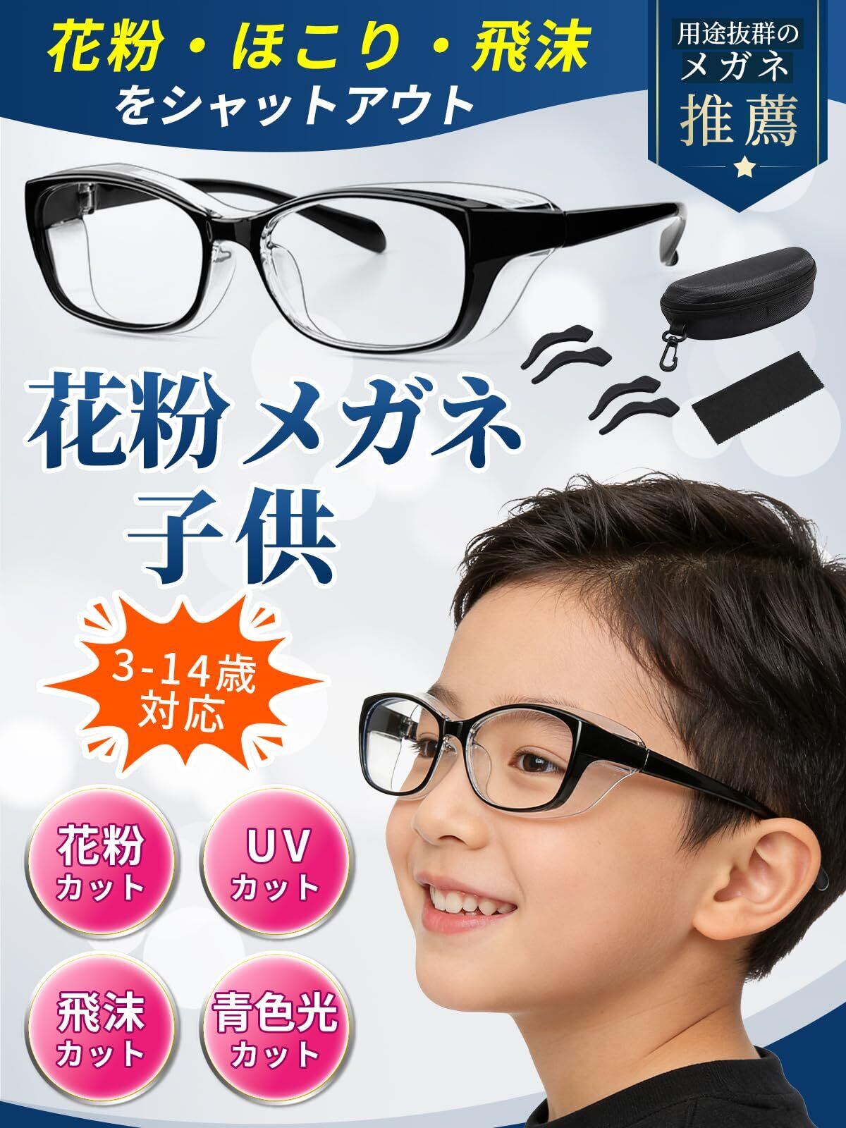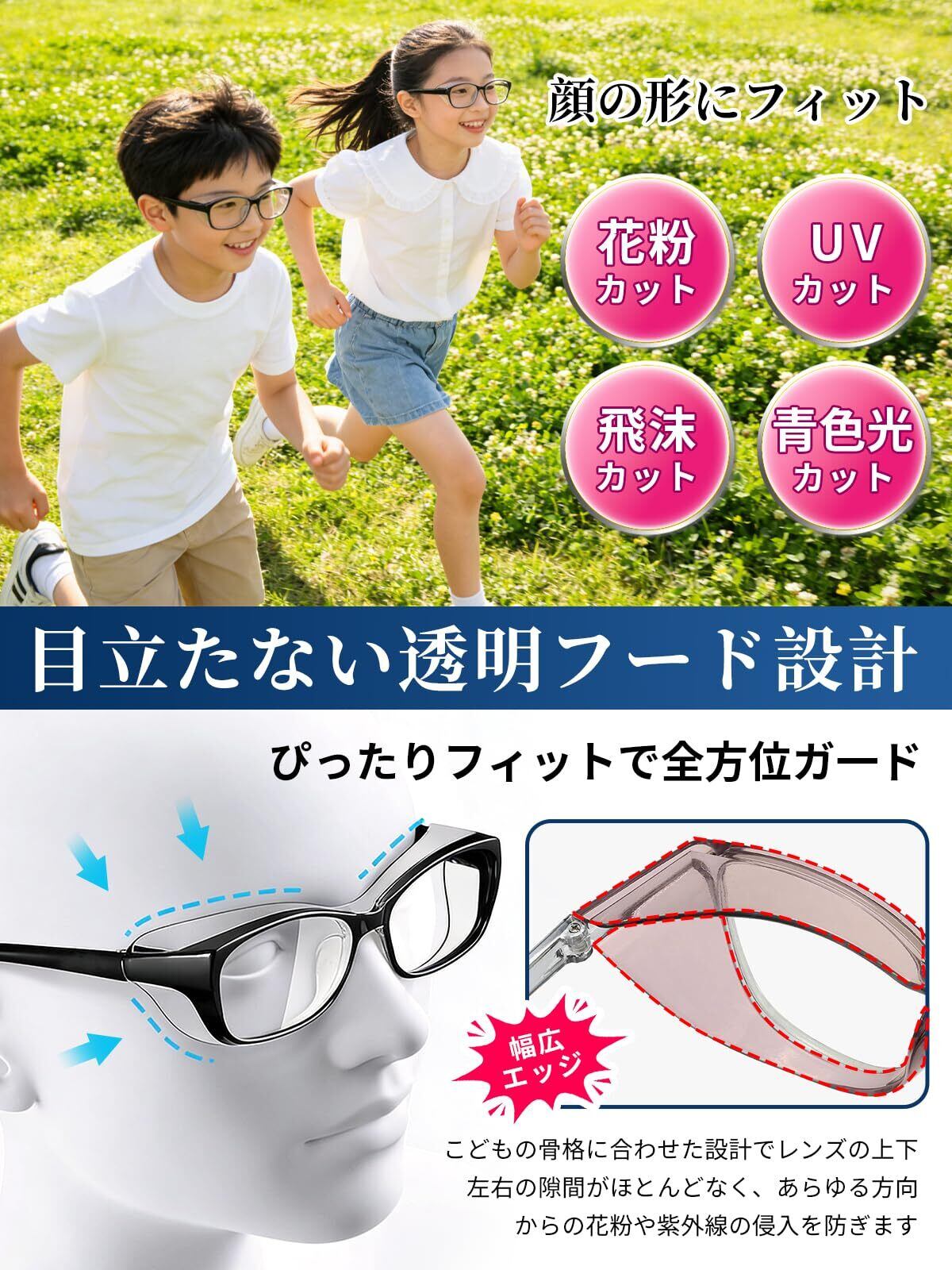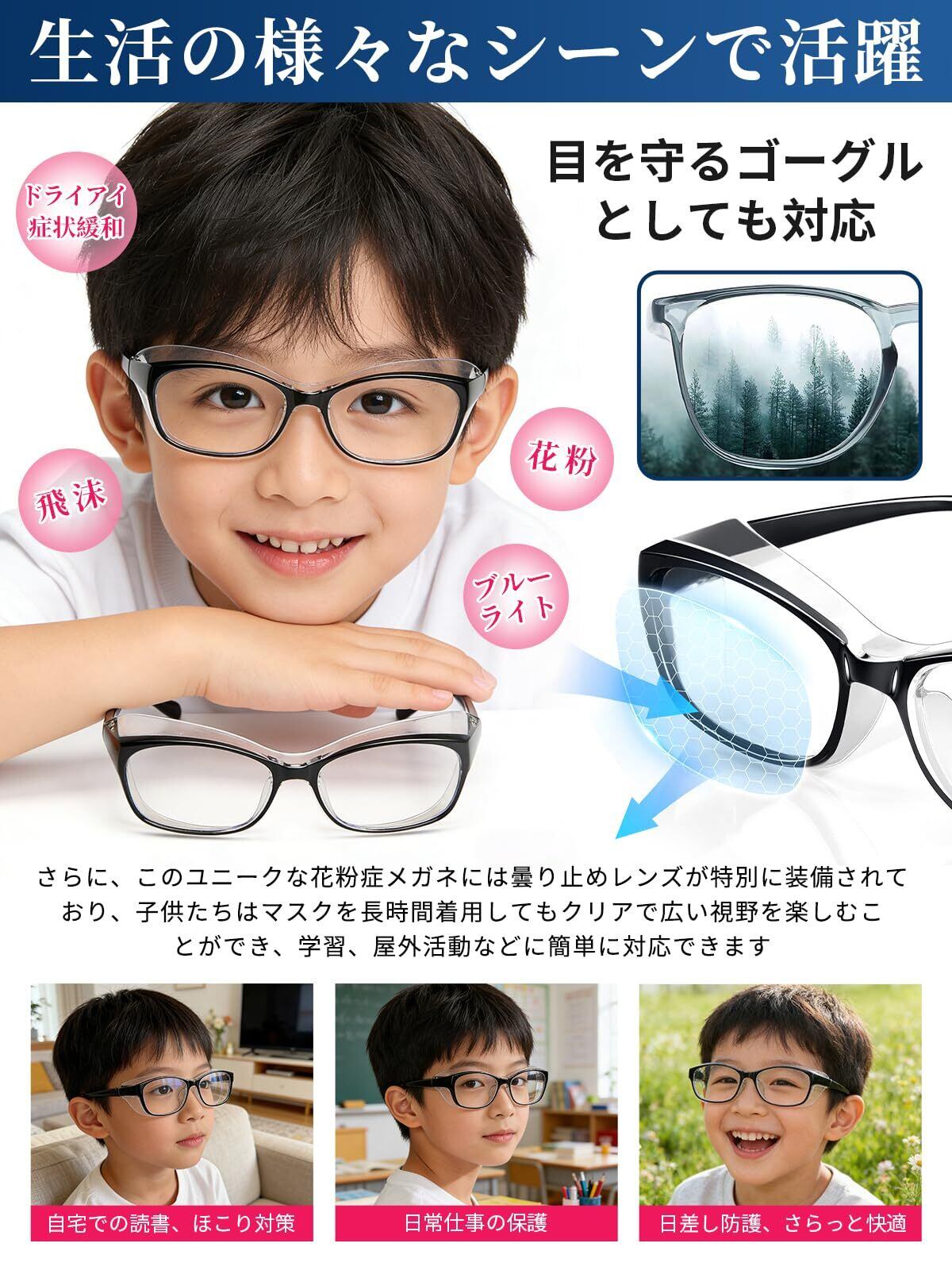 花粉 メガネ 子供 花粉 メガネ キッズ 両面曇り止めレンズ ブルーライト UVカット飛沫 紫外線 粉塵ブロック対策
