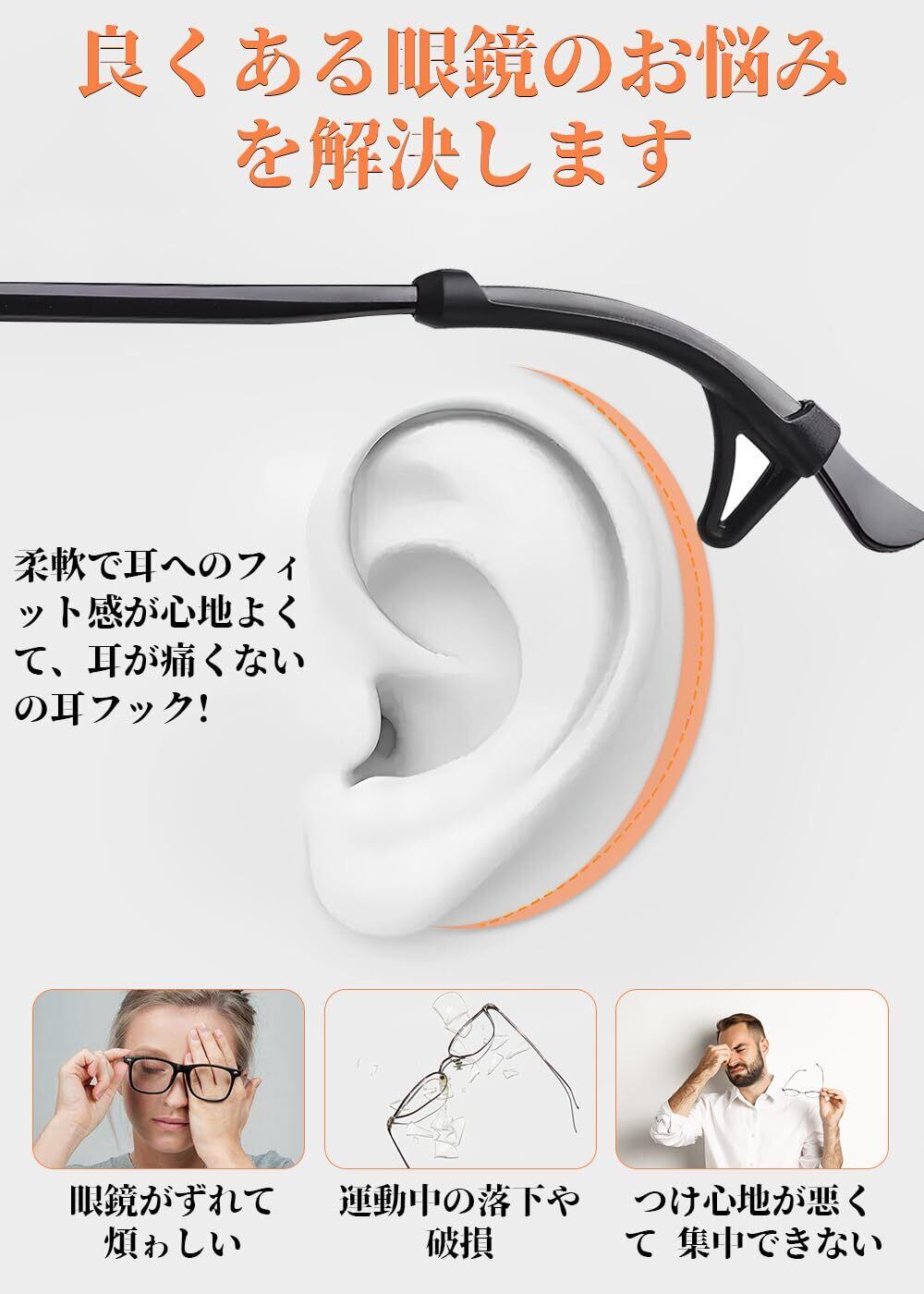 【人間工学に基づいた設計】お子様から大人まで快適に使用可能。長時間着用でも痛くなりません 人間の耳のカーブに合わせて丁寧に設計。テーパード形状が耳裏に自然にフィットし、メガネの重さを効果的に分散します。従来のメガネによる締め付け感や痛みから解放され、一日中装着していても耳は快適なままです。