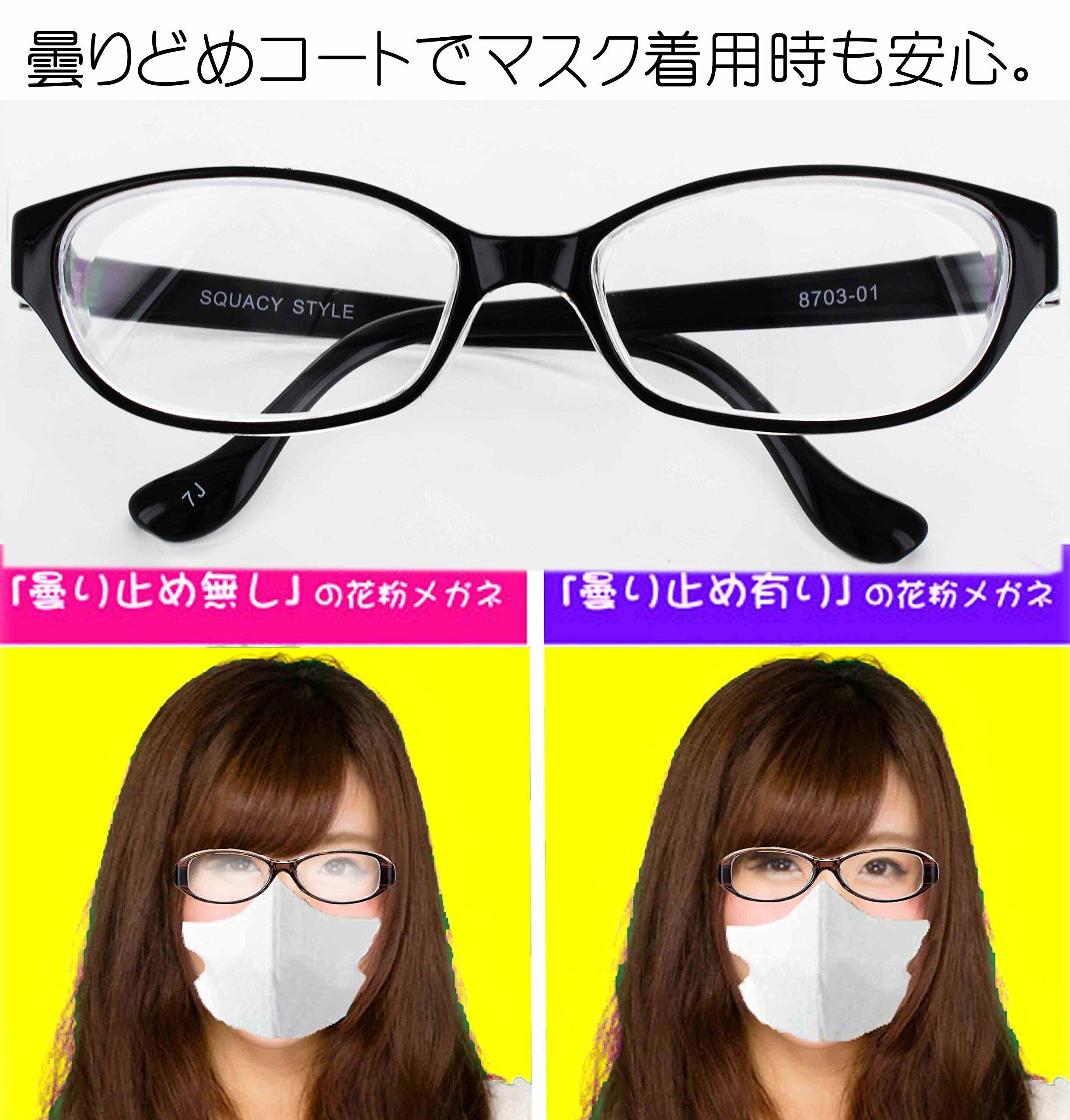 顔にフィット、目立たない、曇りどめ、UVカットと三拍子揃った花粉防止めがね。 認定:JAPOC認証花粉対策製品 (数少ない花粉協会にも認められた商品です。)