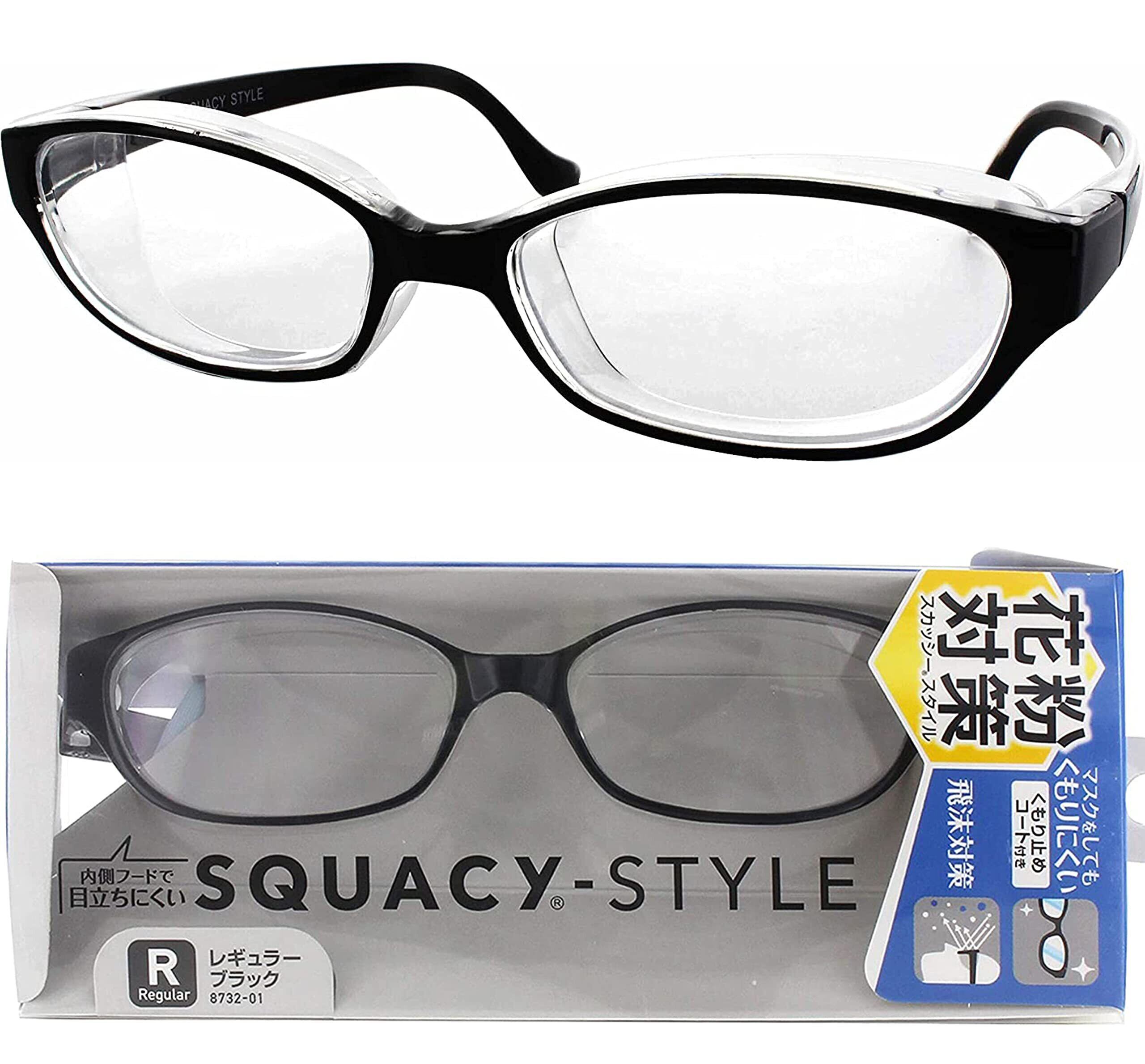 メイガン(Meigan) 名古屋眼鏡 花粉メガネ 目立たない 曇らない おしゃれ スカッシー スタイル ブラック レギュラー (NEW 曇り止めコート仕様) 8732-01