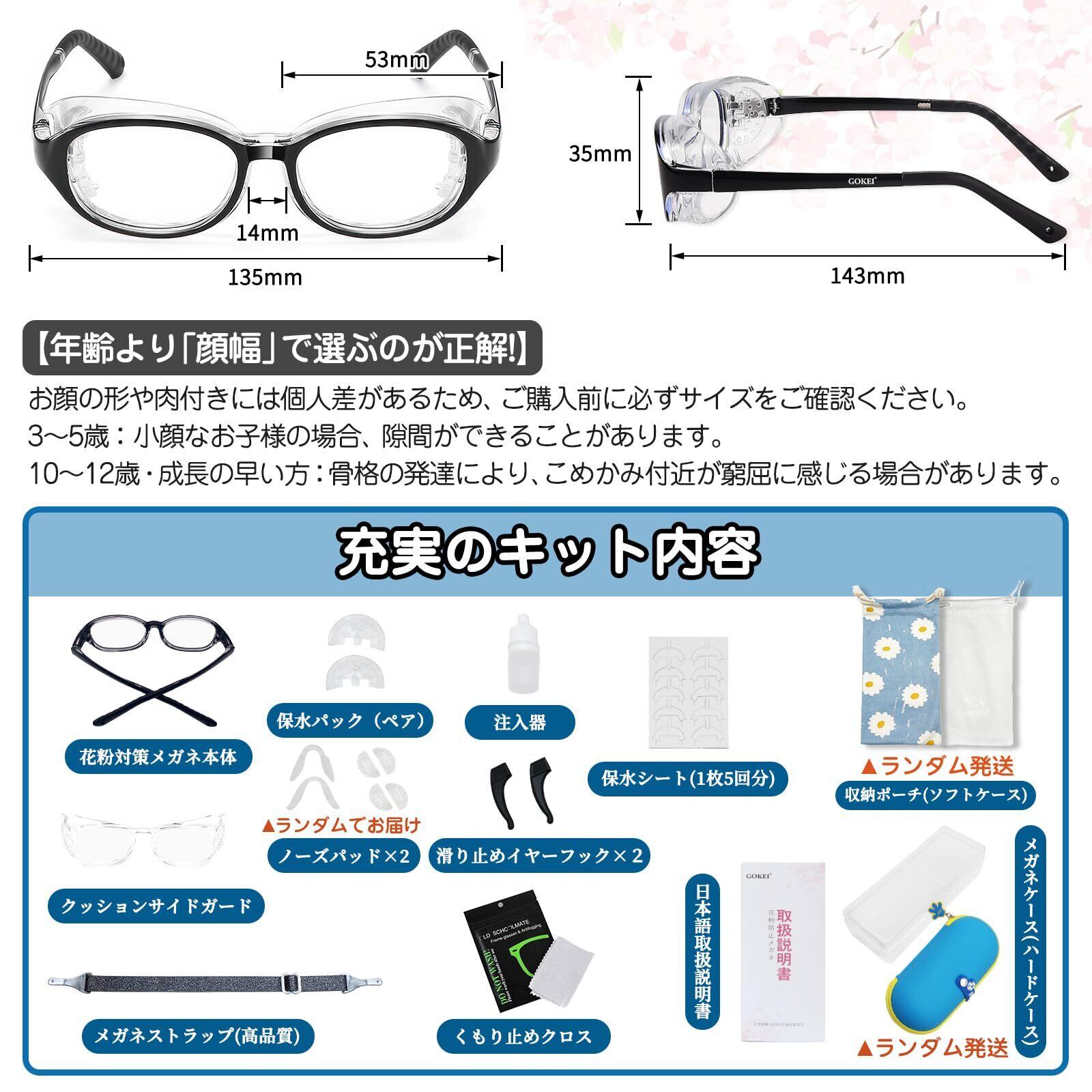花粉防止メガネ 子供用 ドライアイ緩和 曇らない 両面曇り止め ブルーライトカット 花粉症 3-12歳 こども キッズ 曇らない 飛沫防止メガネ 花粉対策 ブラック