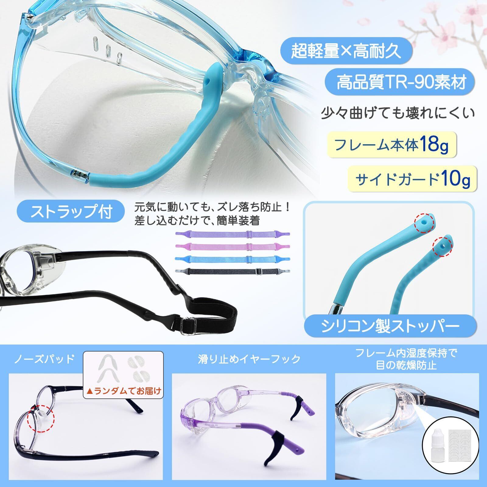 【特価セール】花粉防止メガネ 子供用 ドライアイ緩和 曇らない 両面曇り止め ブルーライトカット 花粉症 3-12歳 こども キッズ 曇らない 飛沫防止メガネ 花粉対策 ブラック