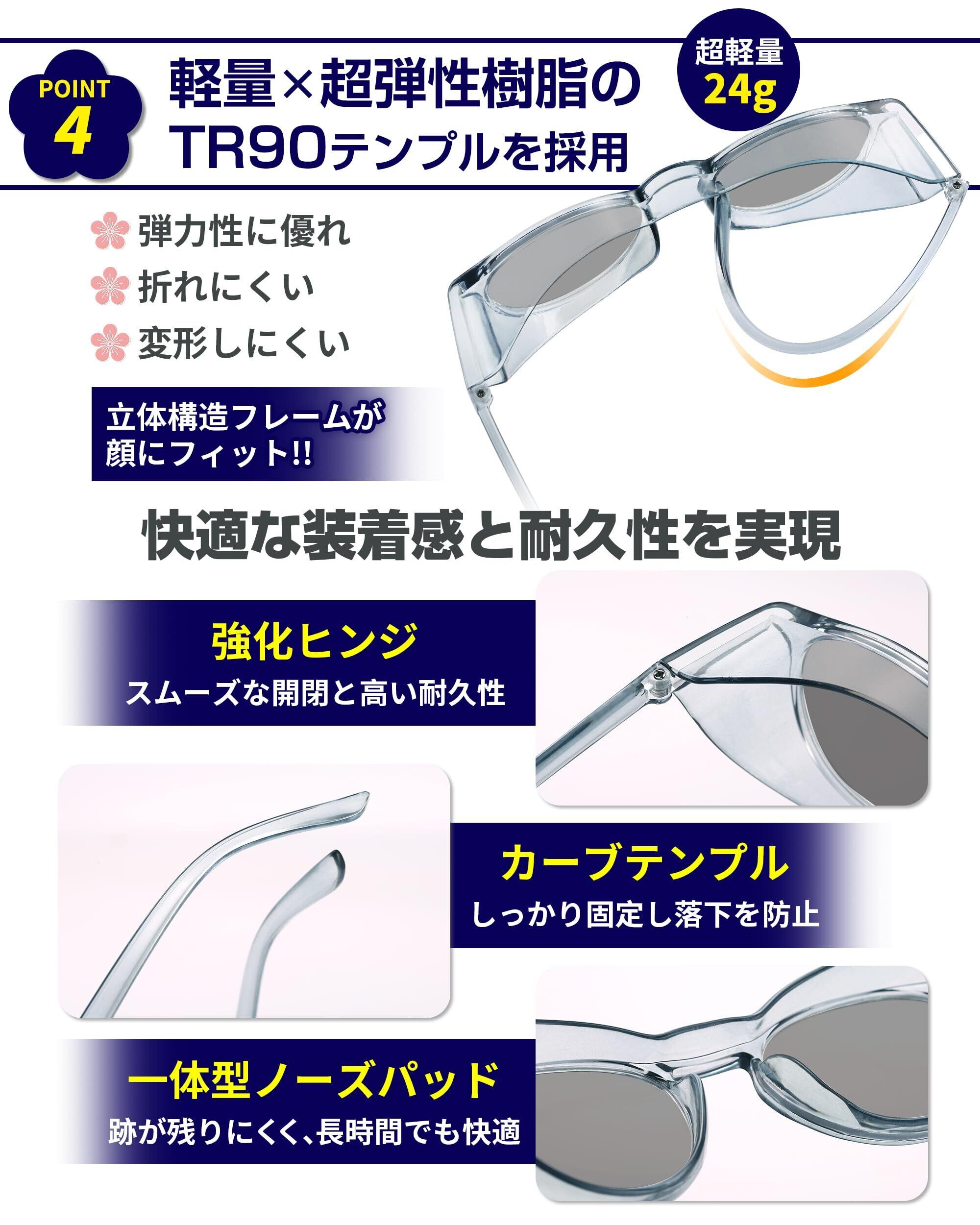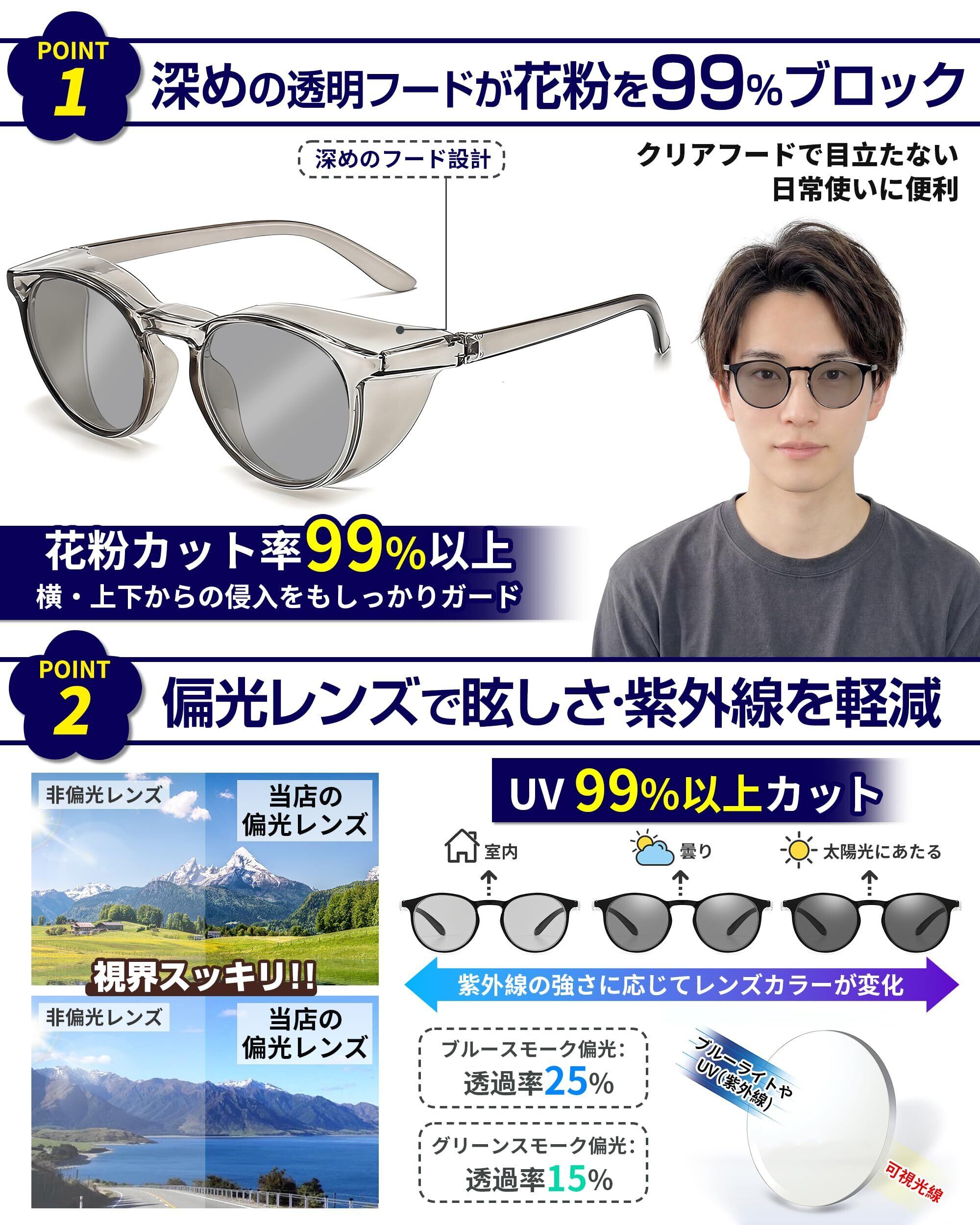 花粉症用 メガネ 花粉対策サングラス 偏光サングラス フード付き 超軽量 変色 花粉メガネ 紫外線カット メンズ レディース 保護メガネ グレー