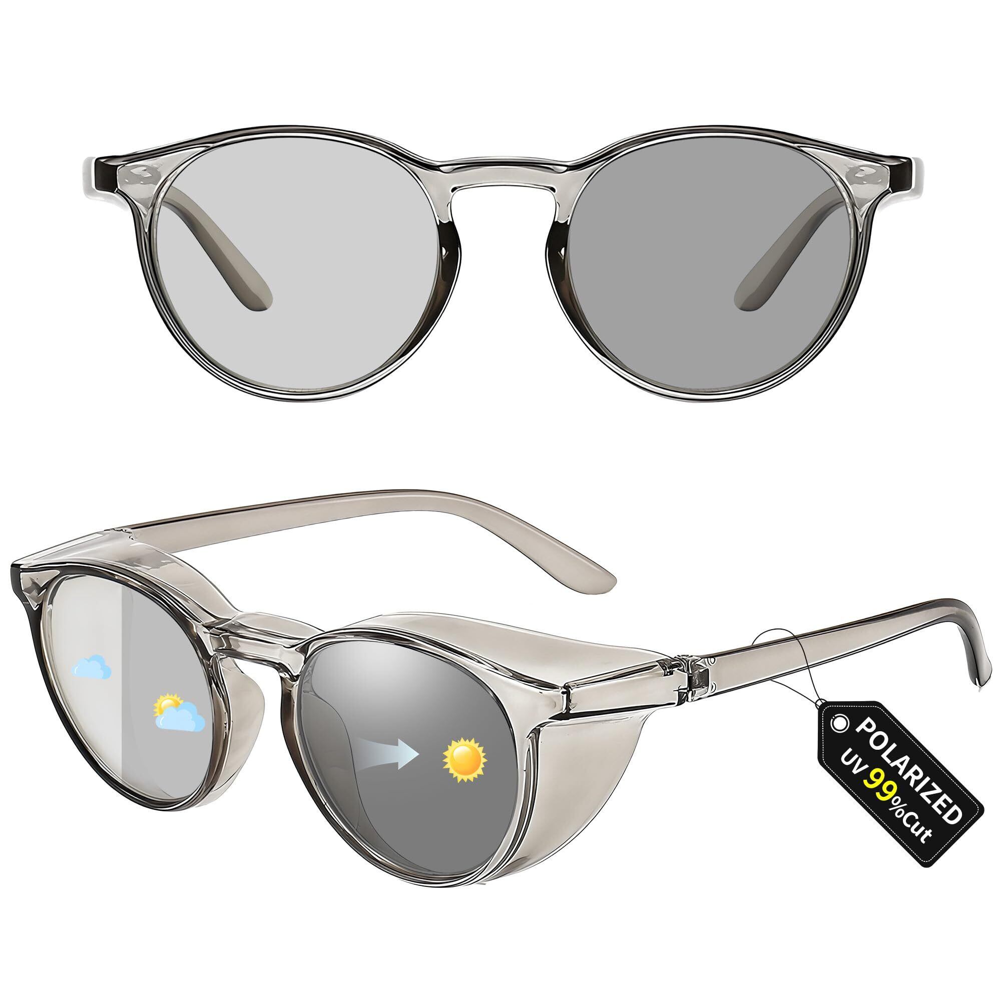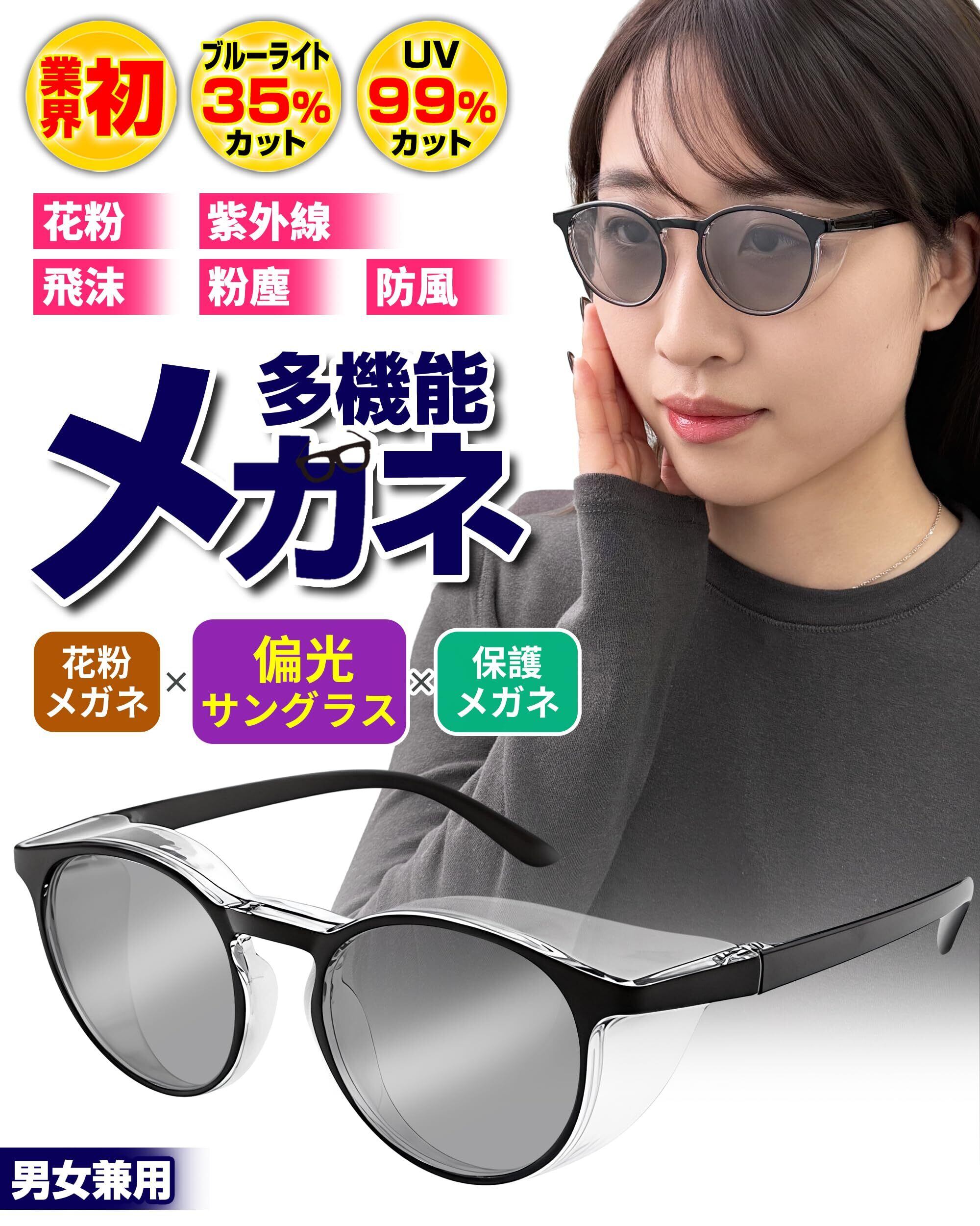 【在庫処分】花粉症用 メガネ 花粉対策サングラス 偏光サングラス フード付き 超軽量 変色 花粉メガネ 紫外線カット メンズ レディース 保護メガネ グレー