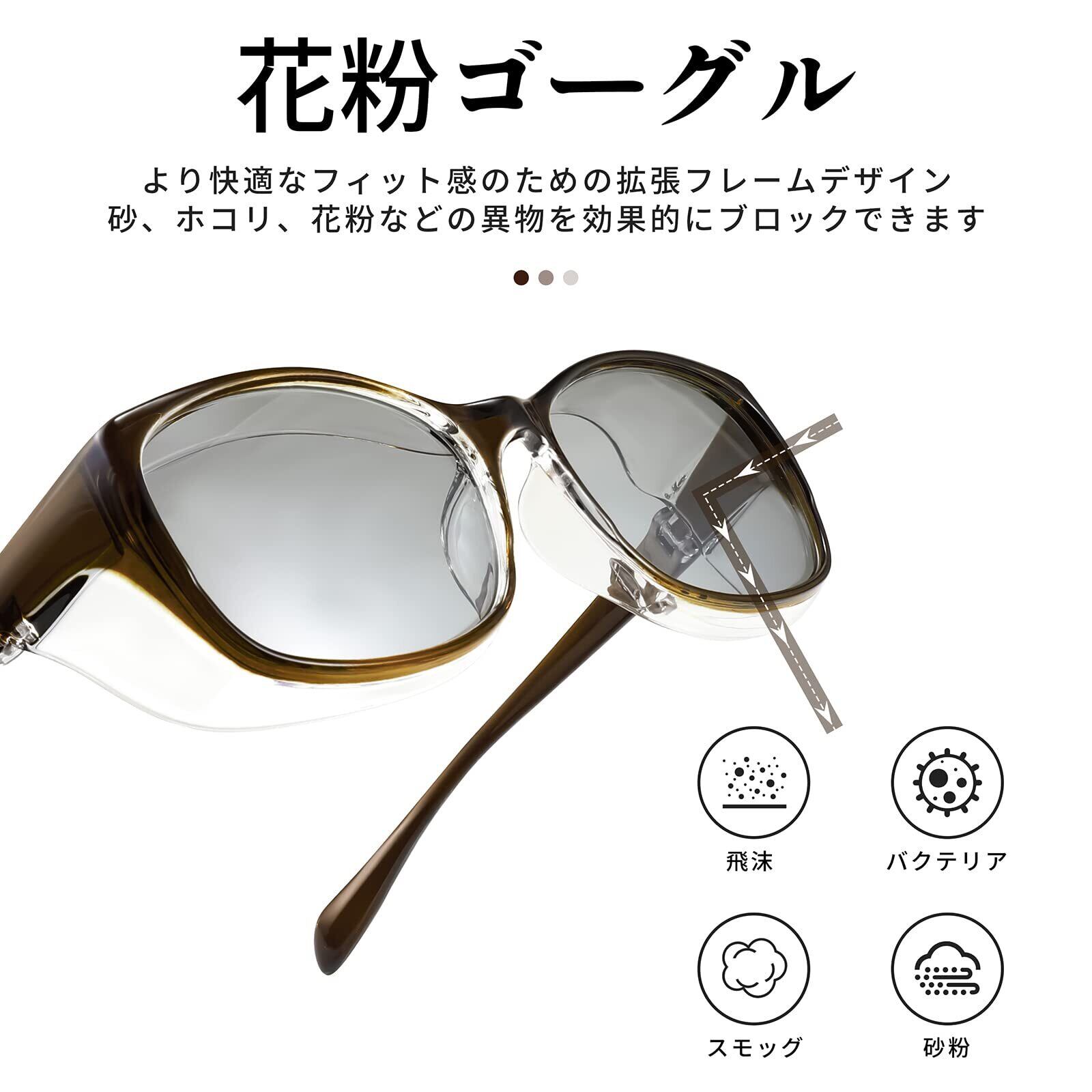 【花粉対策 】花粉やホコリからやさしく目をガードします、花粉やホコリをしっかり防ぐゴーグルタイプの花粉メガネです、花粉カット率は約95%と業界トップクラスを達成!