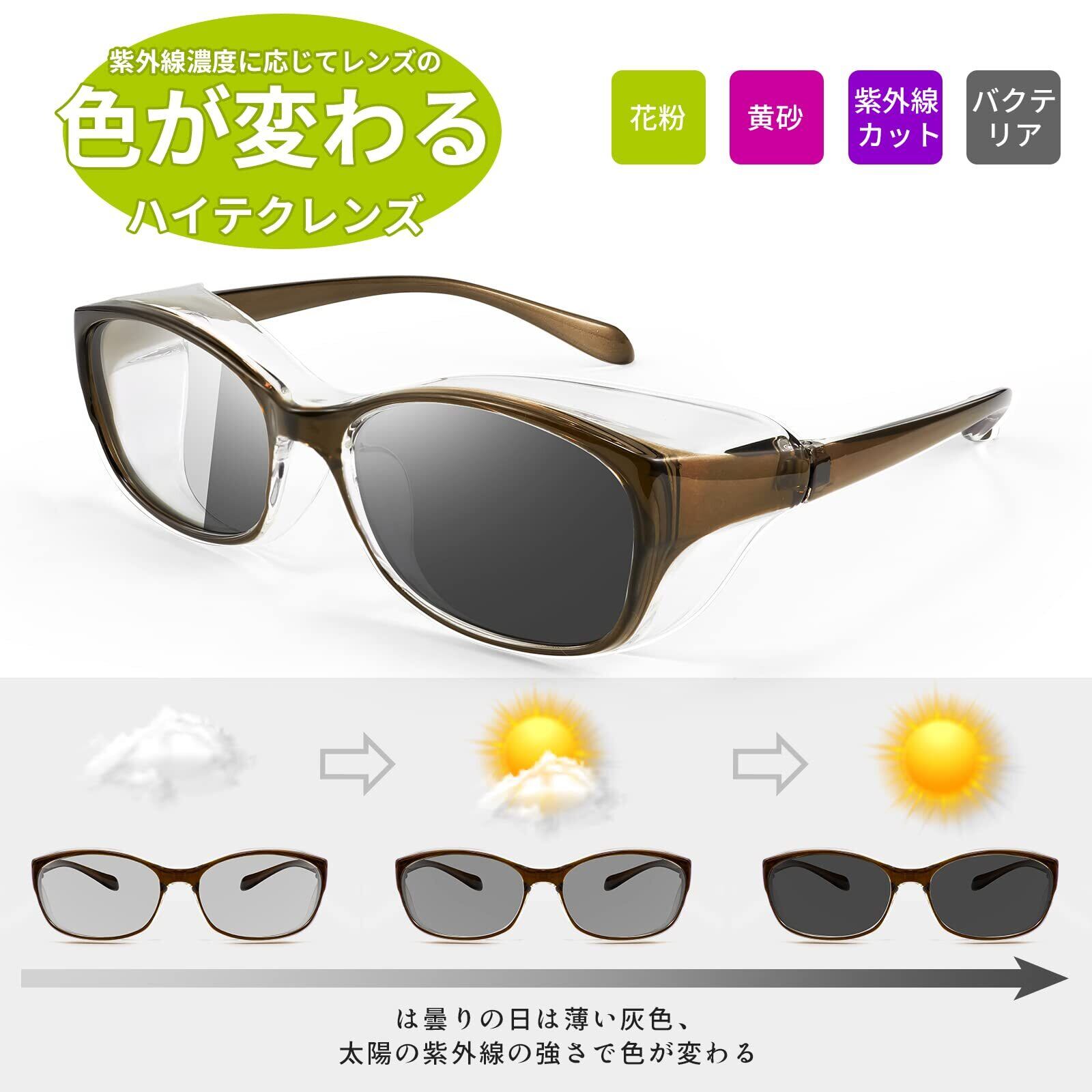 花粉メガネ サングラス メンズ 変色調光偏光 メガネ レディース 防風 防塵 カジュアル UVカット 紫外線カット 保護メガネ 飛沫感染予防 飛沫 ウイルス 花粉症 超軽量 男女兼用 B1050