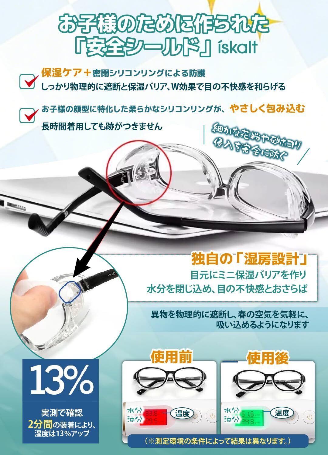 【3つの保護モード&両面くもり止め技術】➊花粉防止モード➋保湿ケアモード➌軽量スタンダードメガネモード。先端的な両面くもり止め技術で、常にクリアな視界を保つ花粉防止メガネとして、マスク着用時もはっきり見えて、外出時も安心、一日中快適に着用できる仕様です。通学や外遊びに適した花粉症 メガネをお探しの方に最適であり、付属のくもり止めクロスでレンズを軽く拭くと、花粉 メガネとしてのくもり止め効果を回復・強化することができます。
