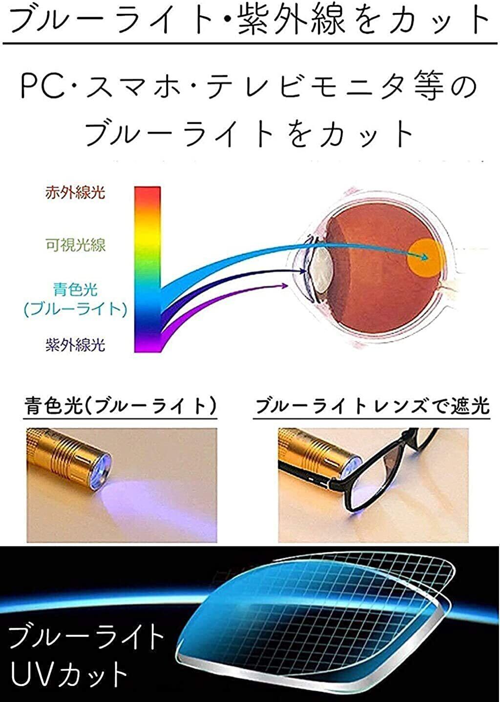 【PCメガネとしても優秀!ブルーライト & UV Wカット】 花粉対策だけではありません。目に有害な「紫外線(UV)」と、スマホ・PCから発される「ブルーライト」も同時にカット。透明に近いクリアレンズなので、職場や学校でも違和感なく使用でき、テレワーク中の目の疲れも軽減します。