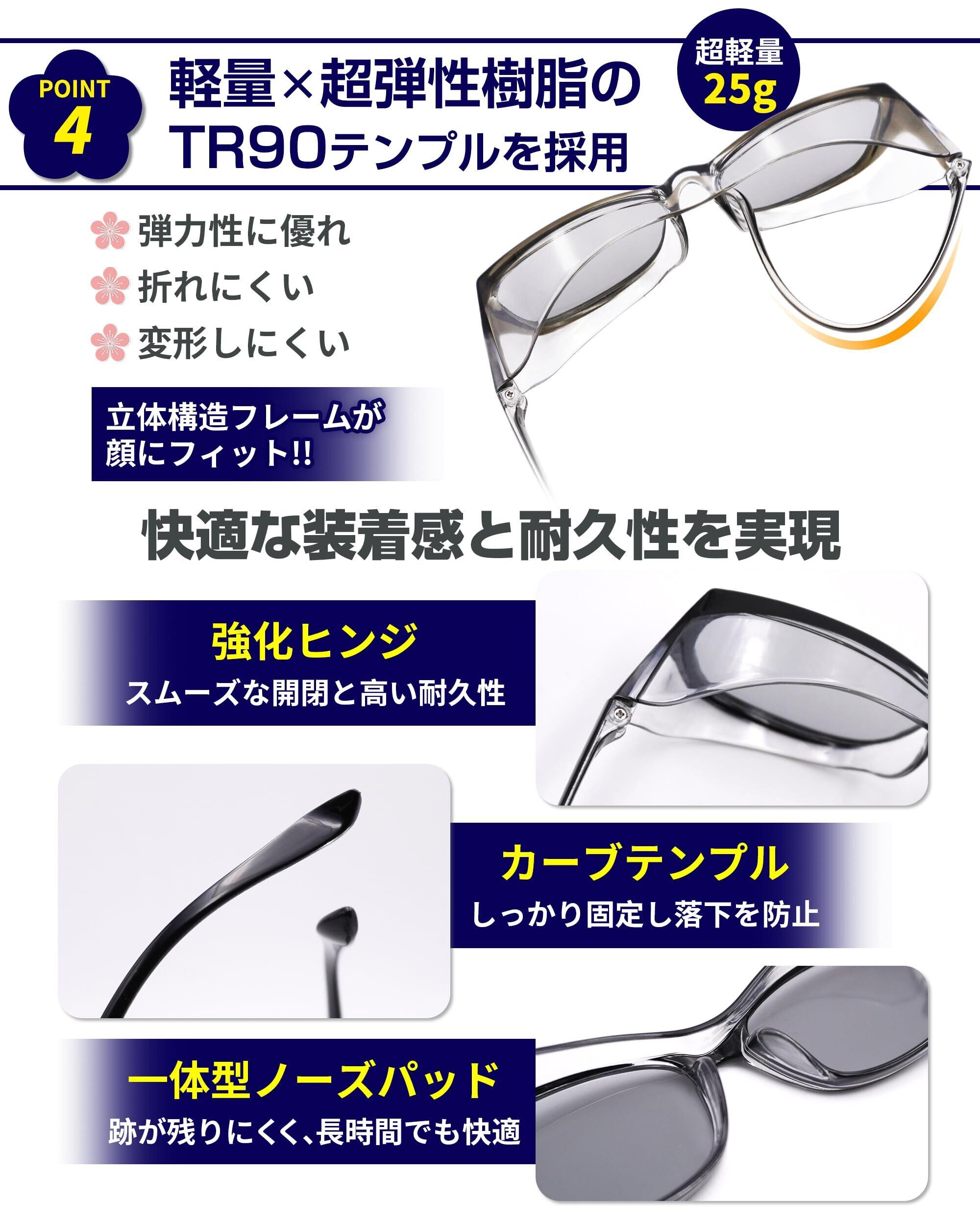 特徴 偏光、花粉カット、UVプロテクション、透明フード、超軽量
