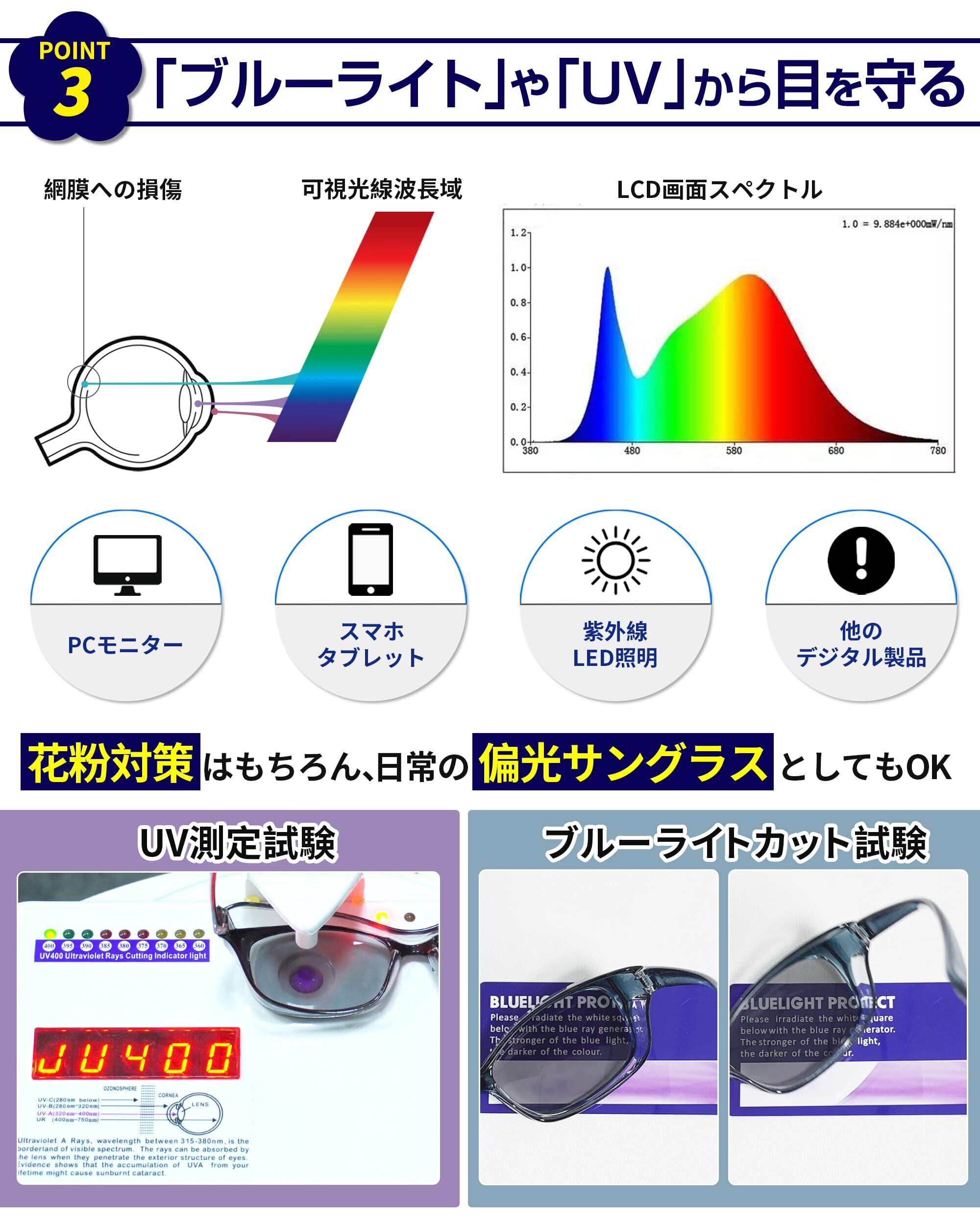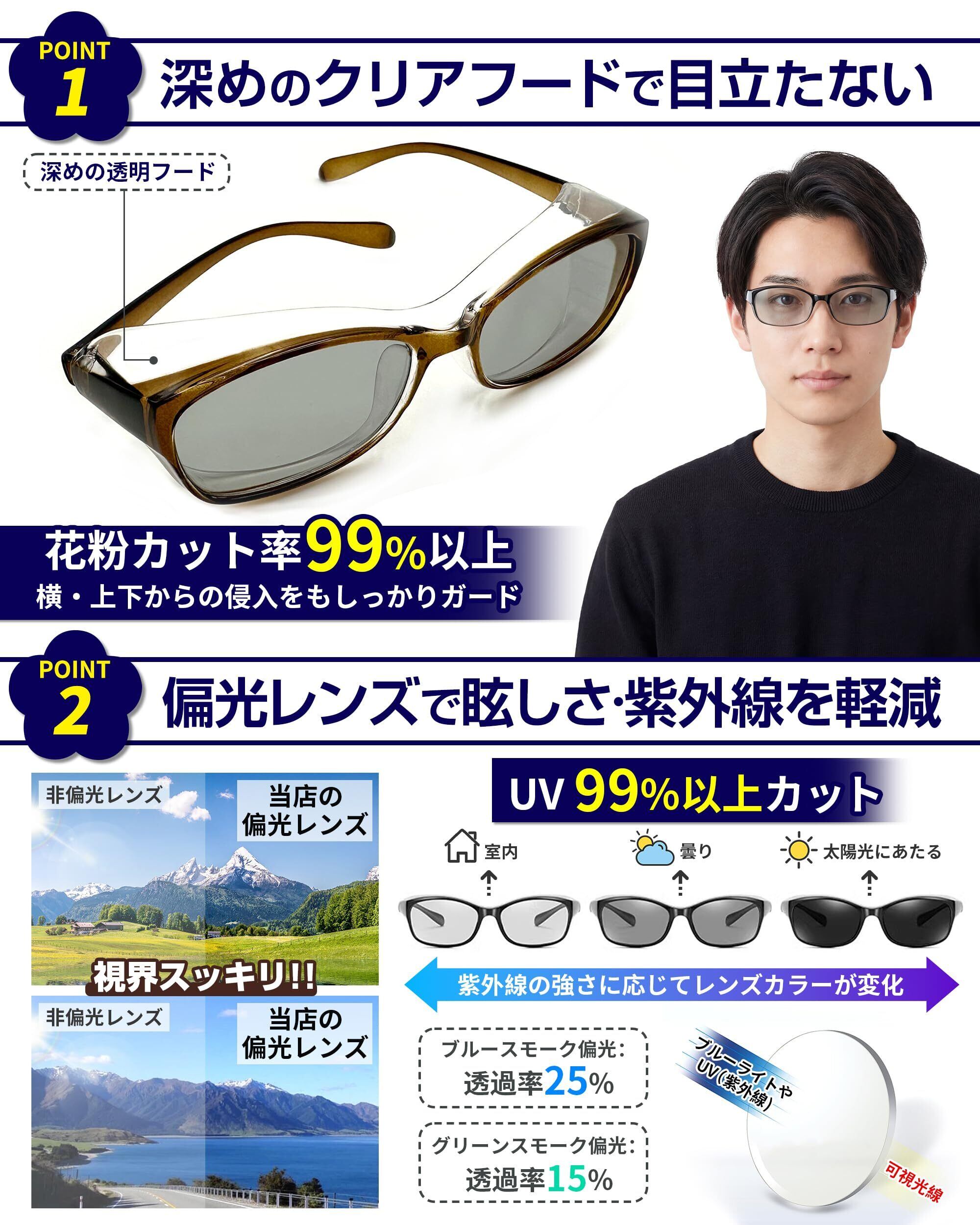 花粉メガネ 偏光サングラス フード付き 花粉対策 サングラス 超軽量 変色 花粉症用 メガネ 紫外線カット メンズ レディース 保護メガネ UVカット 偏光 ブルー
