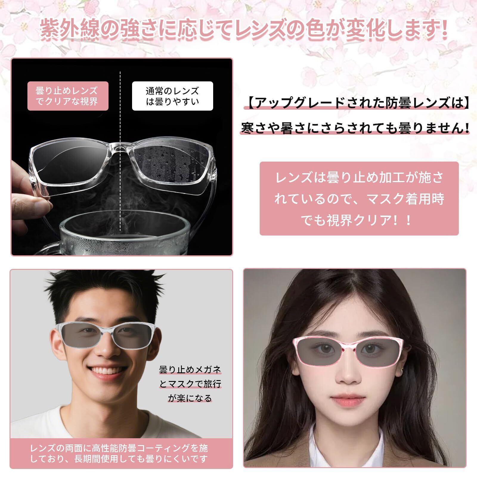 【ブルーライトカット&高性能曇り止めレンズ】このメガネは、有害なブルーライトを35%カットする最先端ハイテクレンズを搭載。タブレットやスマートフォンなどの電子機器から発せられるブルーライトを効果的に遮断し、目を保護します。さらに、このユニークな花粉症対策メガネは、長時間装用しても曇りを効果的に防ぐ特殊な曇り止めレンズも備えています。レンズを曇り止めクロスで拭くだけで曇り止め効果が維持され、クリアで広い視界を確保。仕事、勉強、アウトドア活動などを快適に過ごせます。