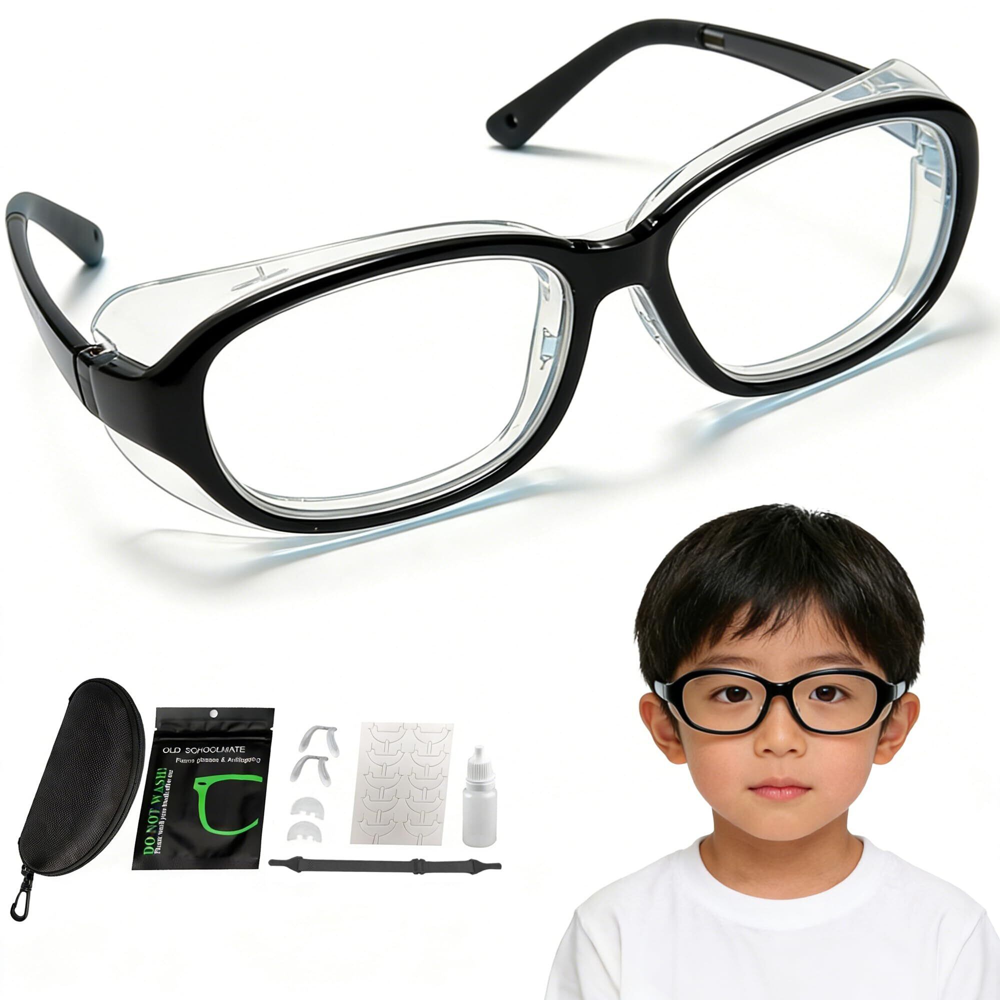 花粉症 メガネ 子供用 花粉防止メガネ 曇らない ブルーライトカット 両面曇り止め 花粉対策 飛沫防止 3-12歳 キッズ こども 花粉症 ゴーグル 小学生 紫外線カット 軽量 伊達メガネ 保護メガネ ブラック