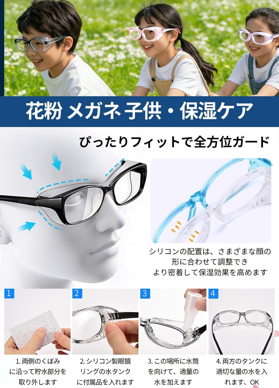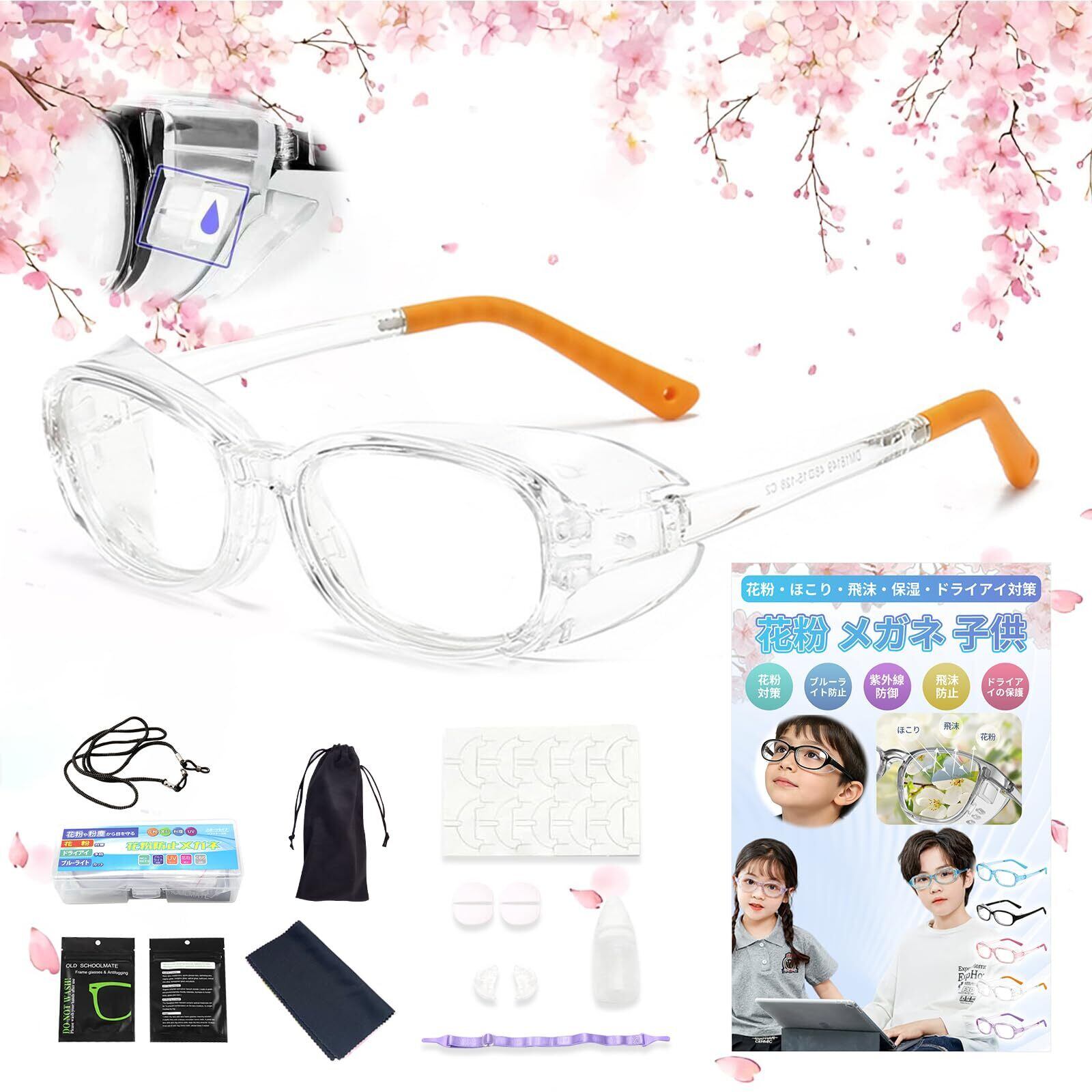 【数量限定】花粉 メガネ 子供 花粉症 メガネ 子供 花粉 メガネ 小学生 曇らない 両面曇り止め ブルーライトカット ドライアイ緩和 飛沫防止 防塵 紫外線対策