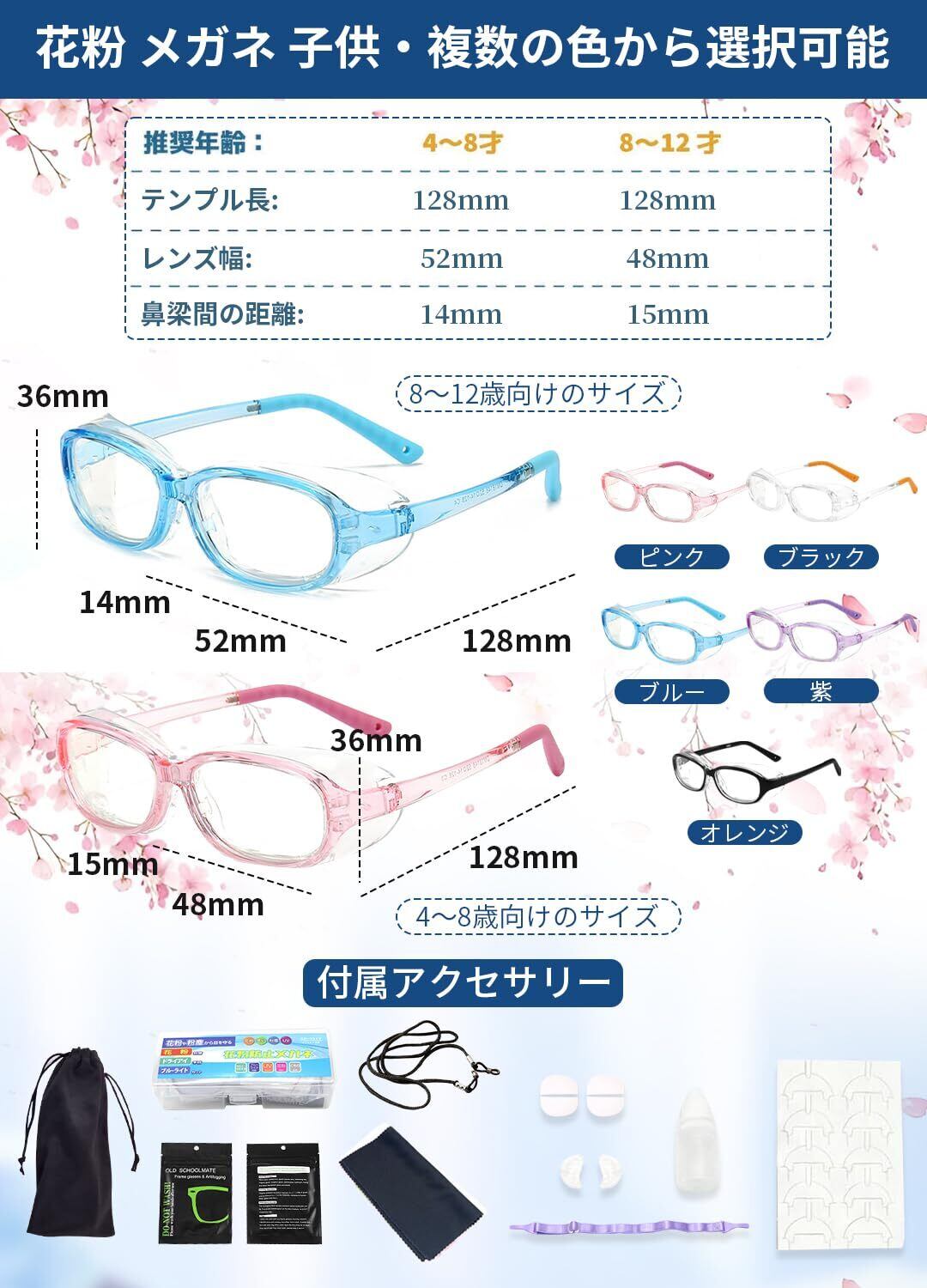 【子供用花粉・ドライアイ対策メガネ】雲見 花粉 メガネ 子供 市販の普通の花粉防止メガネと違って、この花粉対策メガネセットは4歳から14歳のお子様に最適です。パッドを交換することで、ほこり対策メガネとしても使用できます。フレームは透明部分で、自然でかけやすいデザインです。花粉シーズンのアレルギー症状を軽減するだけでなく、日常生活ではドライアイの保湿ケアやブルーライトカットにも役立ちます。