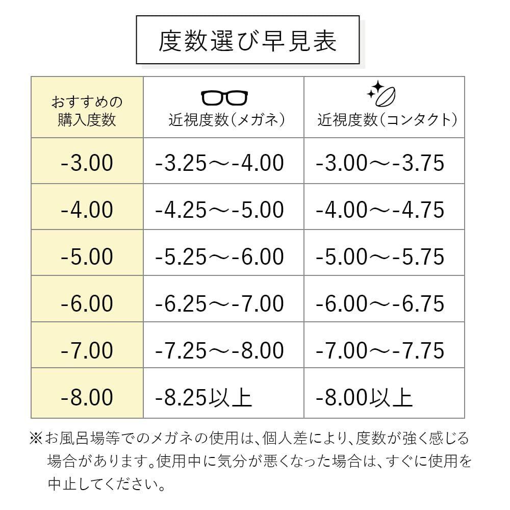 度数:-8.00 (裸眼視力 0.03※)※裸眼視力はあくまでも目安の数値であり、乱視の有無などによって見え方は異なります