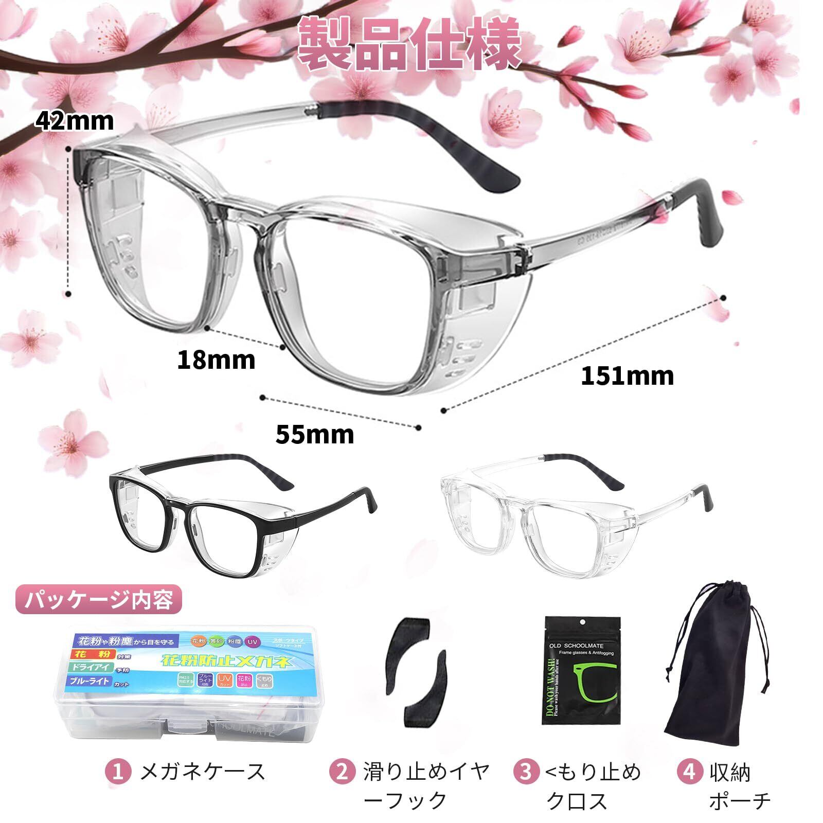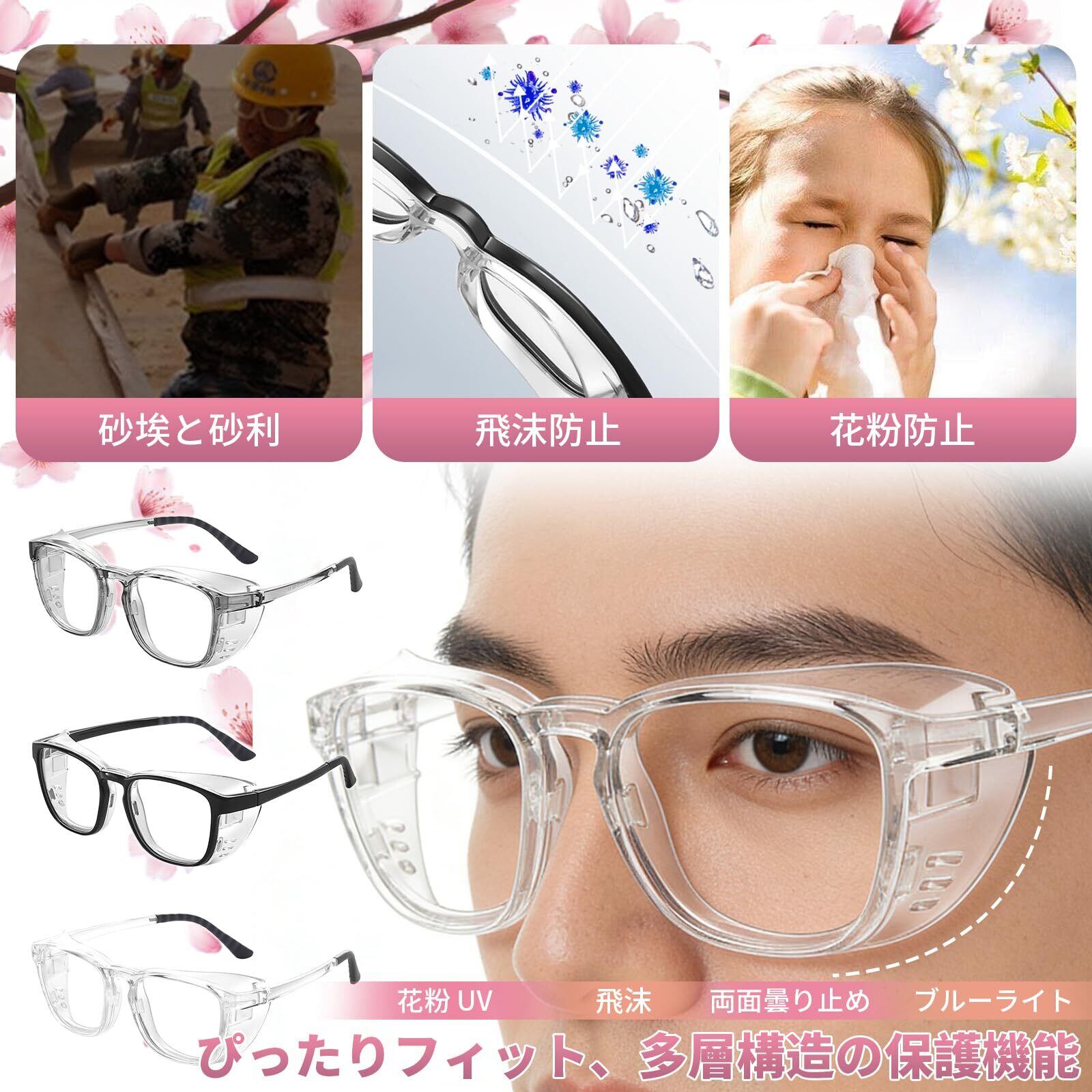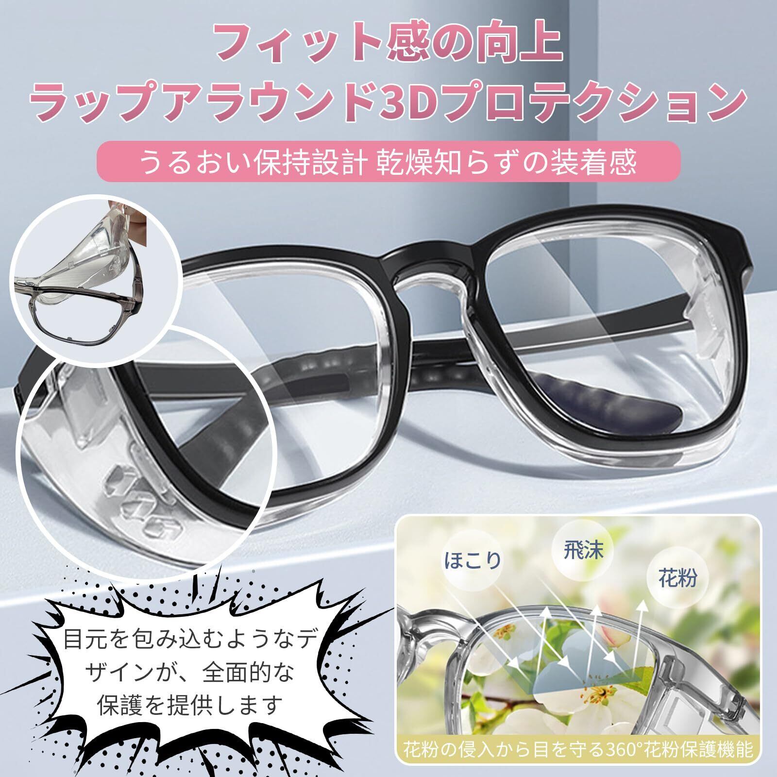 花粉症 メガネ 両面曇り止め 花粉 メガネ 乾燥防止 高い光透過性 花粉症 ゴーグル 強靭 おしゃれ 眼鏡 UVカット 飛沫 紫外線 粉塵 花粉対策メガネ レディース メンズ