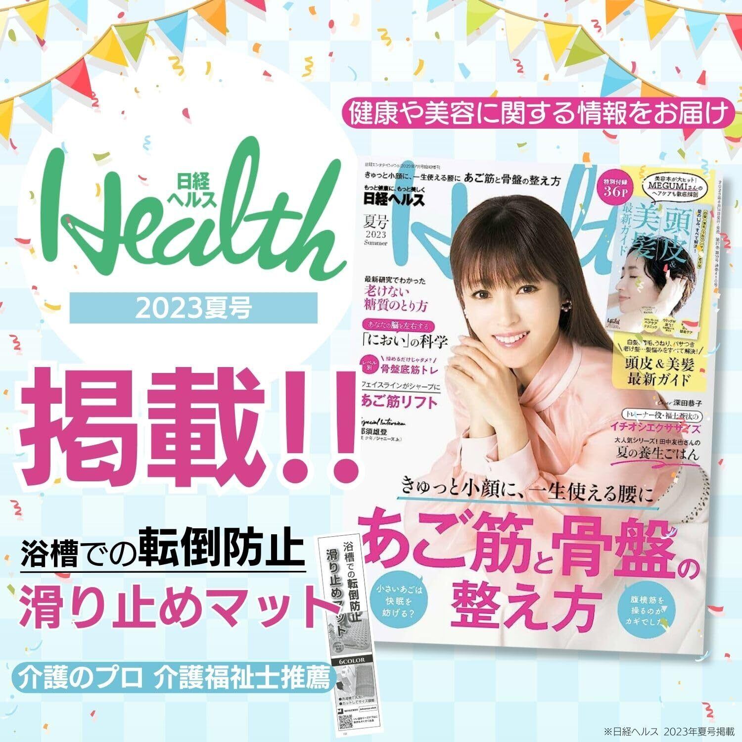 【健康雑誌日経ヘルスケア掲載】雑誌日経ヘルスケアに当商品滑り止めマットが紹介されました。2023夏号に掲載されました。