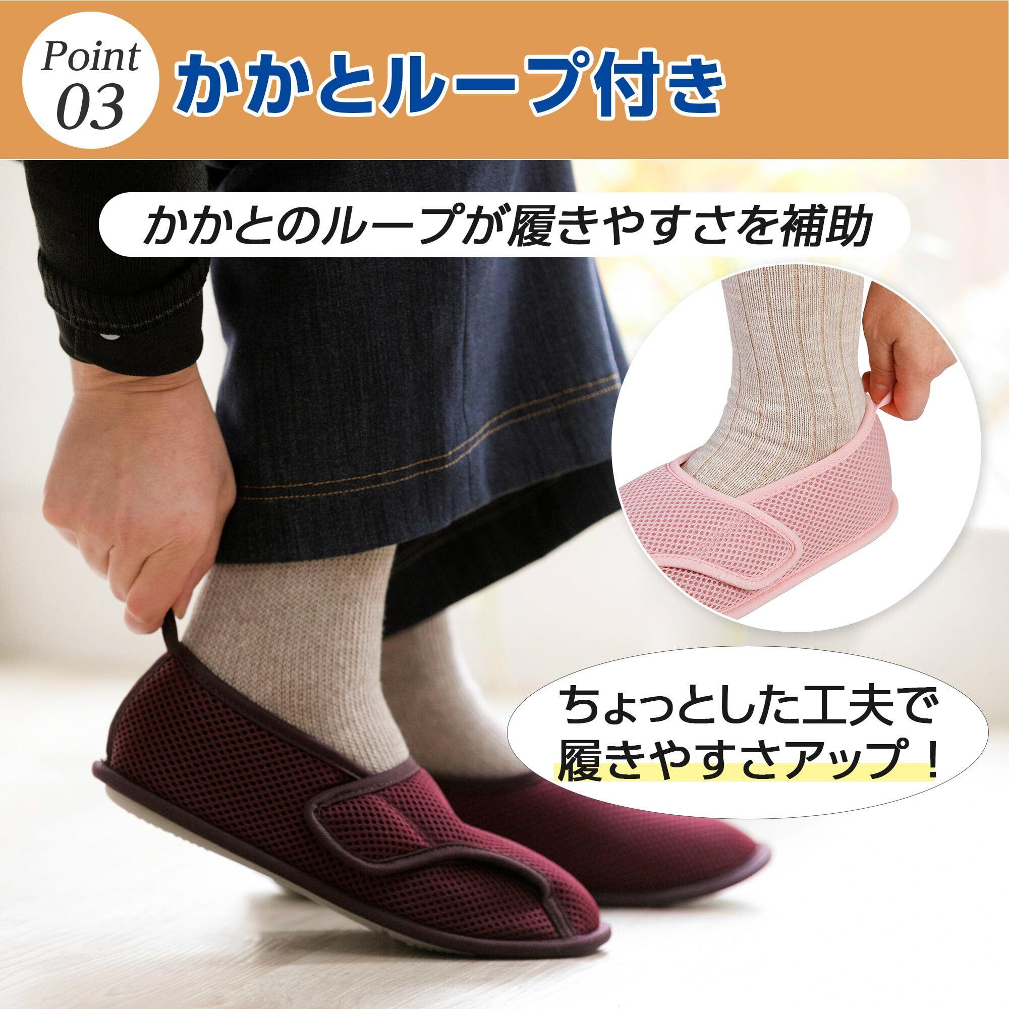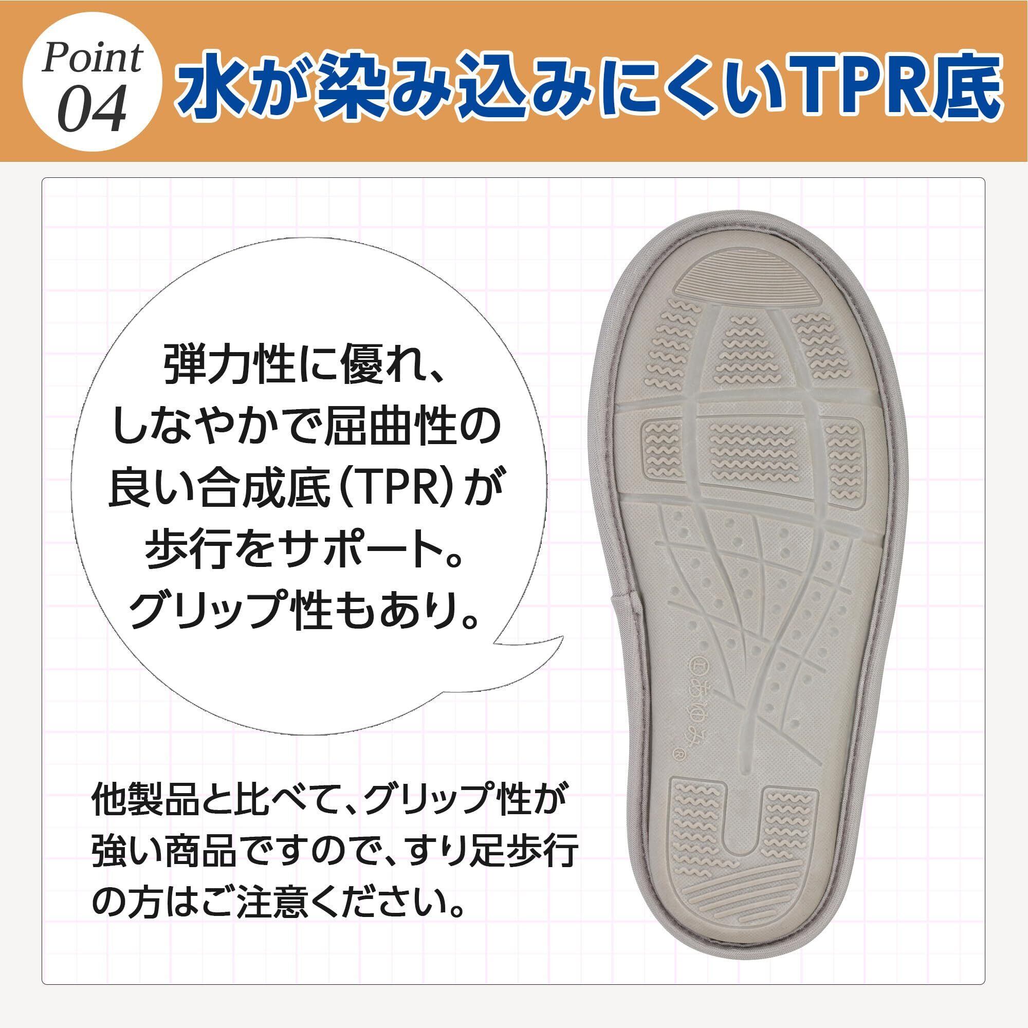 【日本転倒予防学会推奨品、病院・高齢者施設/入院・入居時の上履きとして】快適で安全な歩行をサポートするルームシューズです。入院・入居時の転倒予防として、スリッパの代わりとしてご活用いただけます。病院や老人ホーム、デイサービスなど幅広い施設で使用されています。
