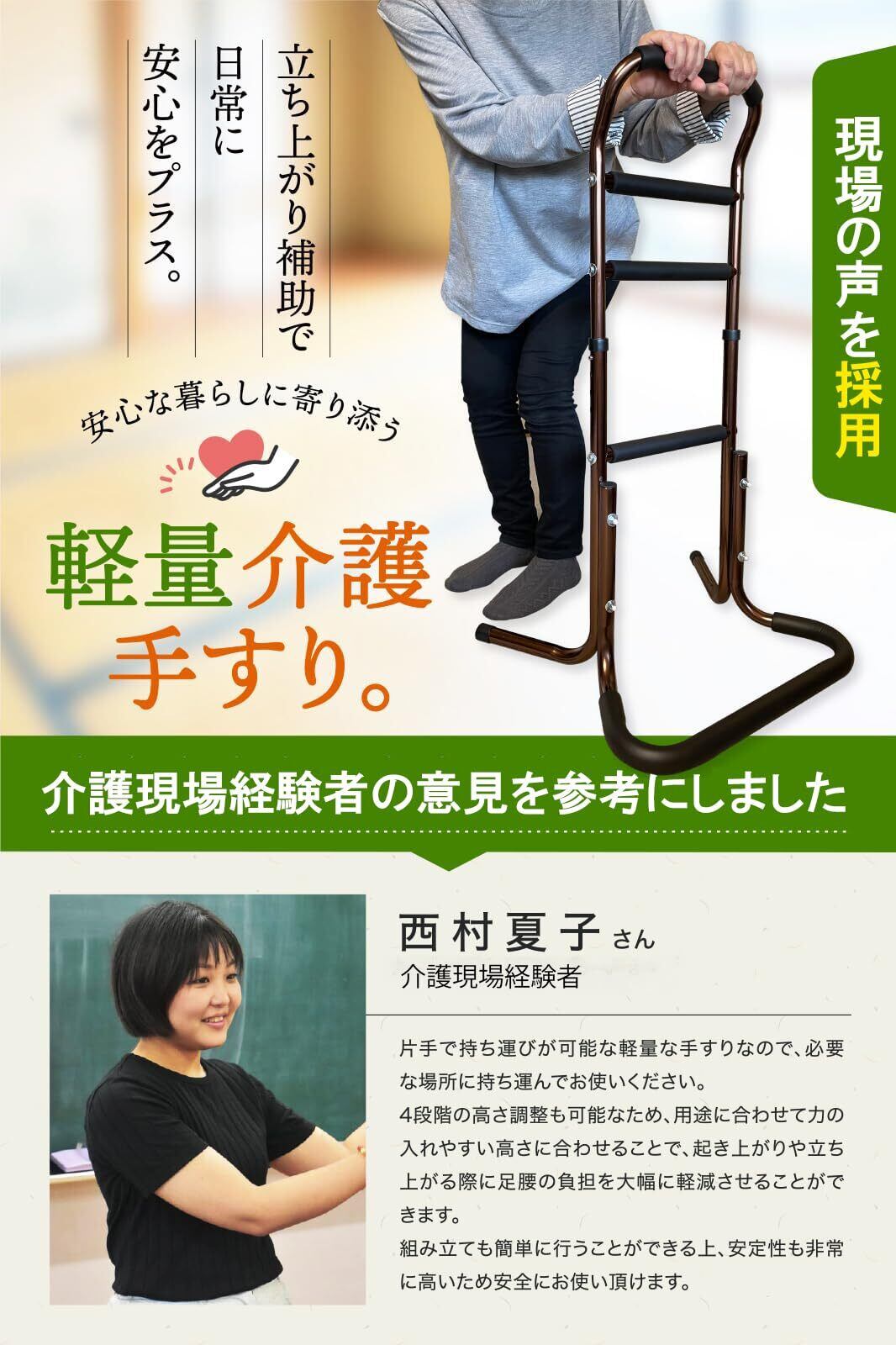 【在庫セール】介護用手すり 立ち上がり補助 補助手すり 簡単な組み立て 転倒防止 軽量 介護 4段階高さ調節 日本語説明書 mugenbo (ブラウン)