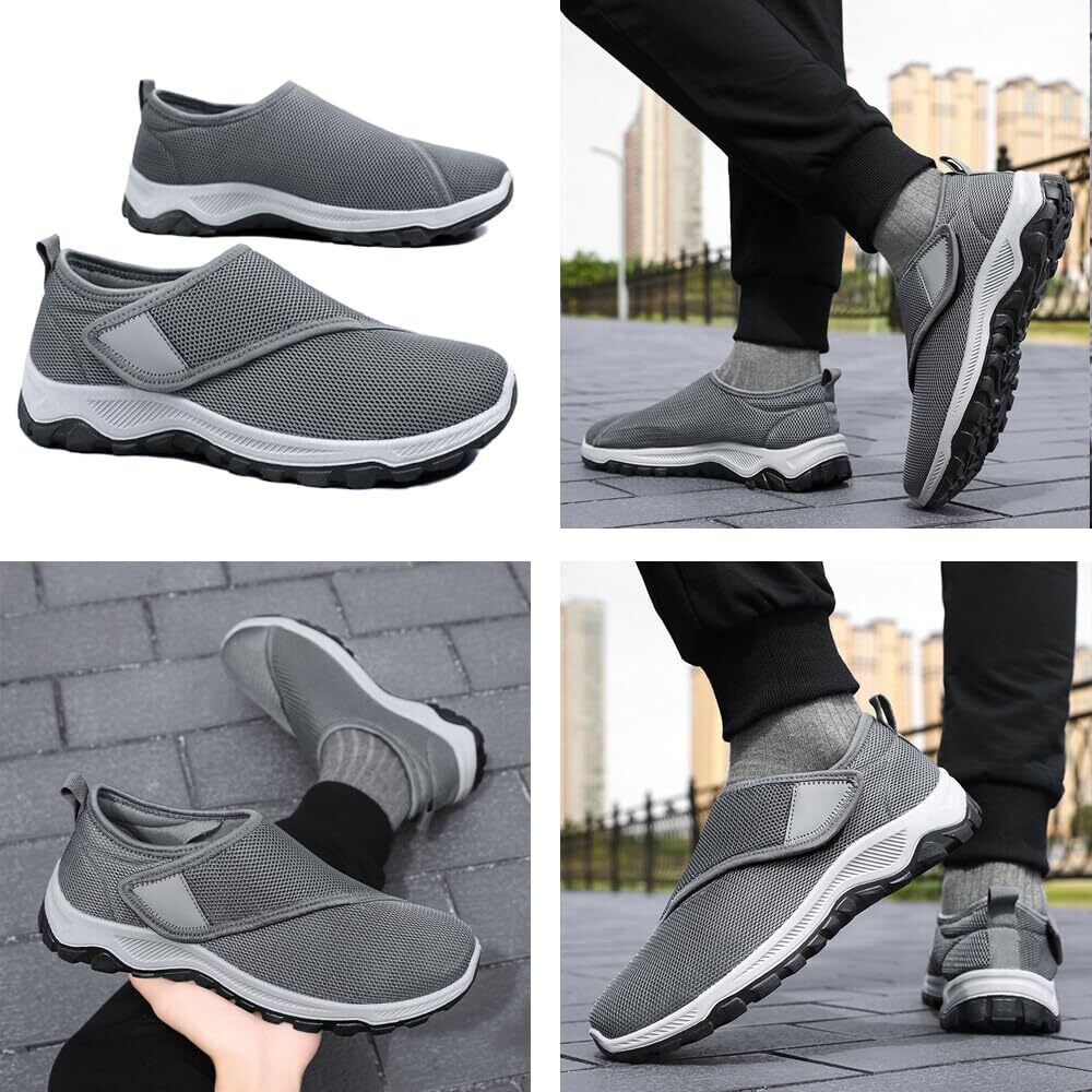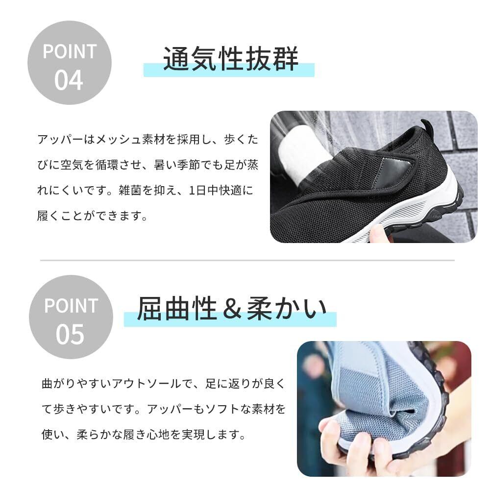 【脱ぎ履き容易】履き口は幅広のマジックテープが採用されており、微調整が可能で、足にしっかりフィットします。快適な着用感と動きやすさを実現しています。大きく開く履き口で、片手で簡単に素早く脱ぎ履きができ、高齢者や体の不自由な方にとって非常に便利です。