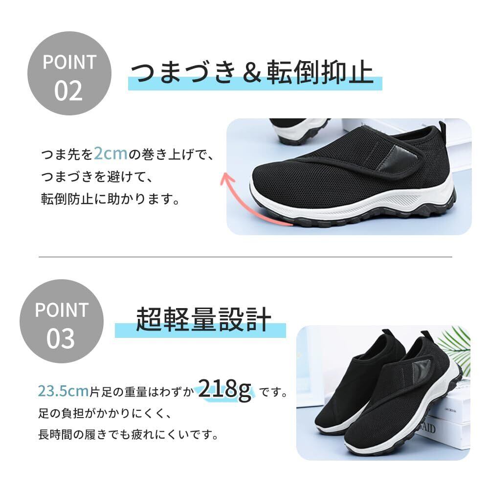 【サイズ案内】男女兼用で23㎝から27㎝までサイズ展開。足が幅広・甲高な場合、3Eワイズ以上を求める方、足にけがやむくみがある場合、ワンサイズ大きめをお勧めします。