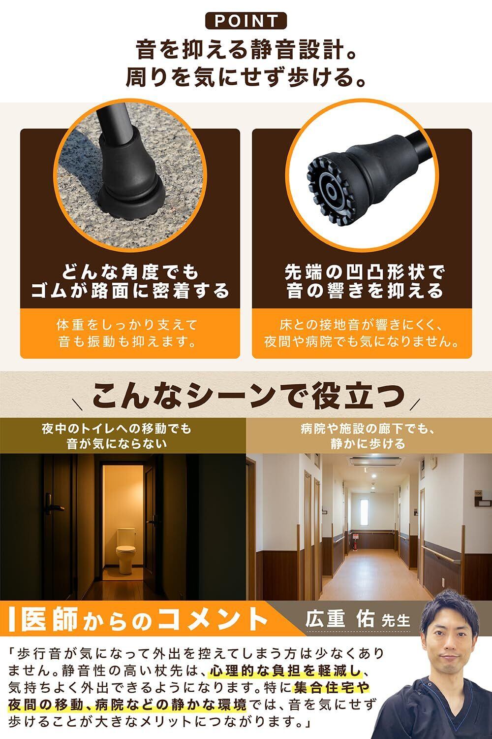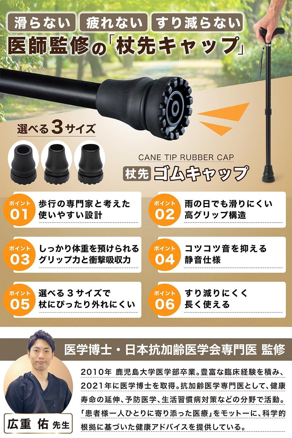 【医師が監修した、信頼できる歩行サポート設計】この杖先ゴムは、医学博士・日本抗加齢医学会専門医である広重佑先生の監修のもと設計された製品です。健康寿命を延ばすために重要な「転倒予防」の観点から、歩行の際に起こりやすい「滑る」「音が響く」「突き上げが痛い」といった悩みに着目し、日常生活での安全性と快適性を追求しました。使いやすさだけでなく、毎日の"歩く"という行動に寄り添う設計で、安心して使い続けられます。