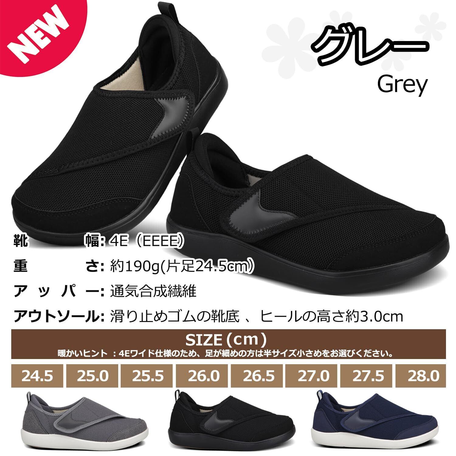 介護シューズ メンズ 幅広 4E リハビリシューズ 男性用 介護 靴 滑り止め 履きやすい靴 高齢者 介護用靴 入院 マジックテープ 室内履き 外履き 通気性 転倒予防 軽量