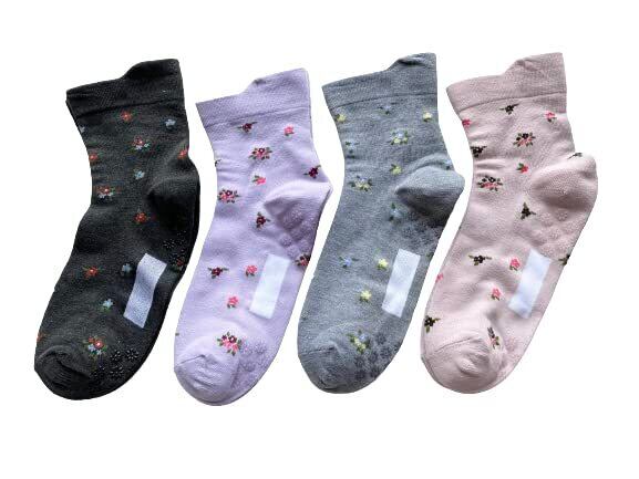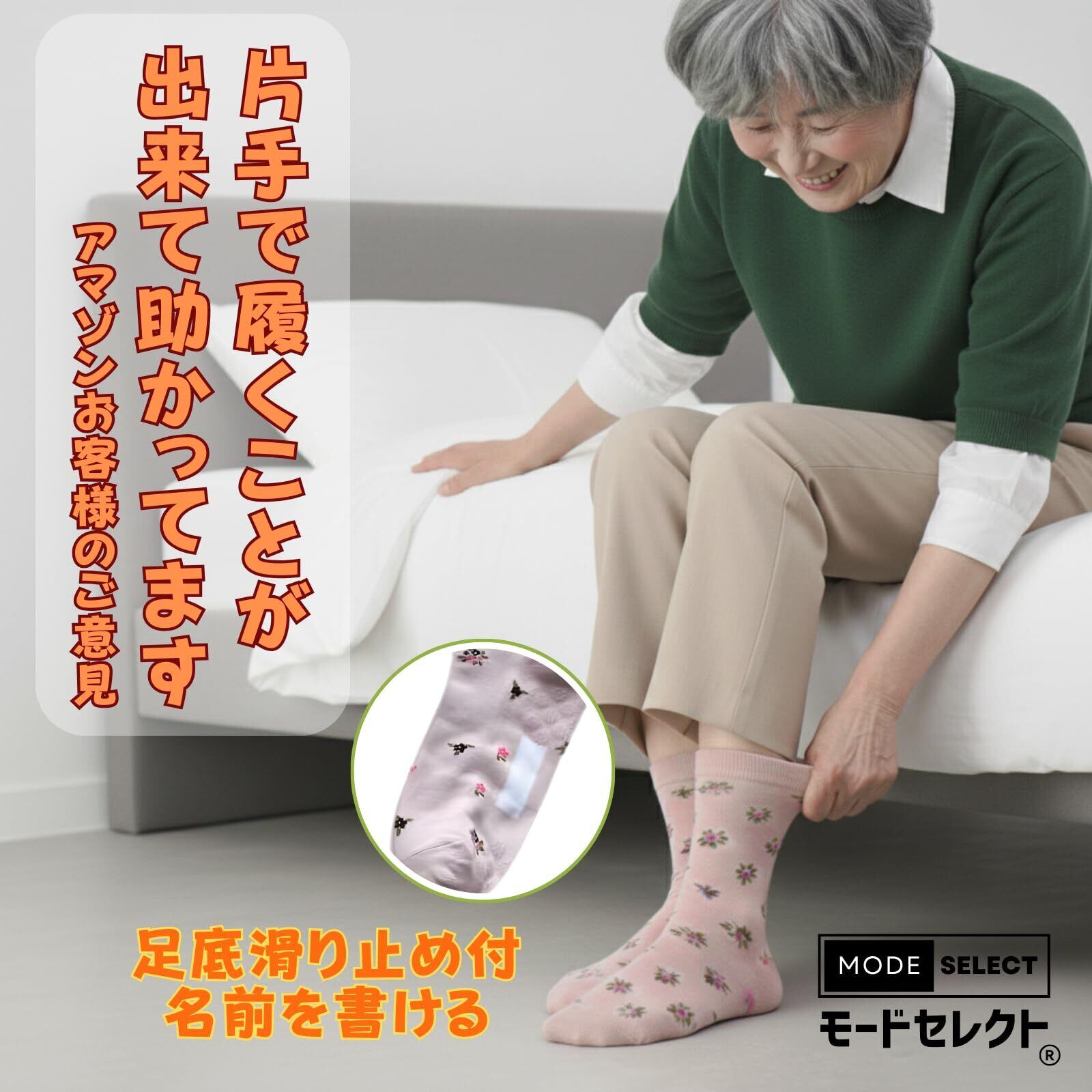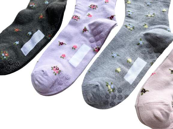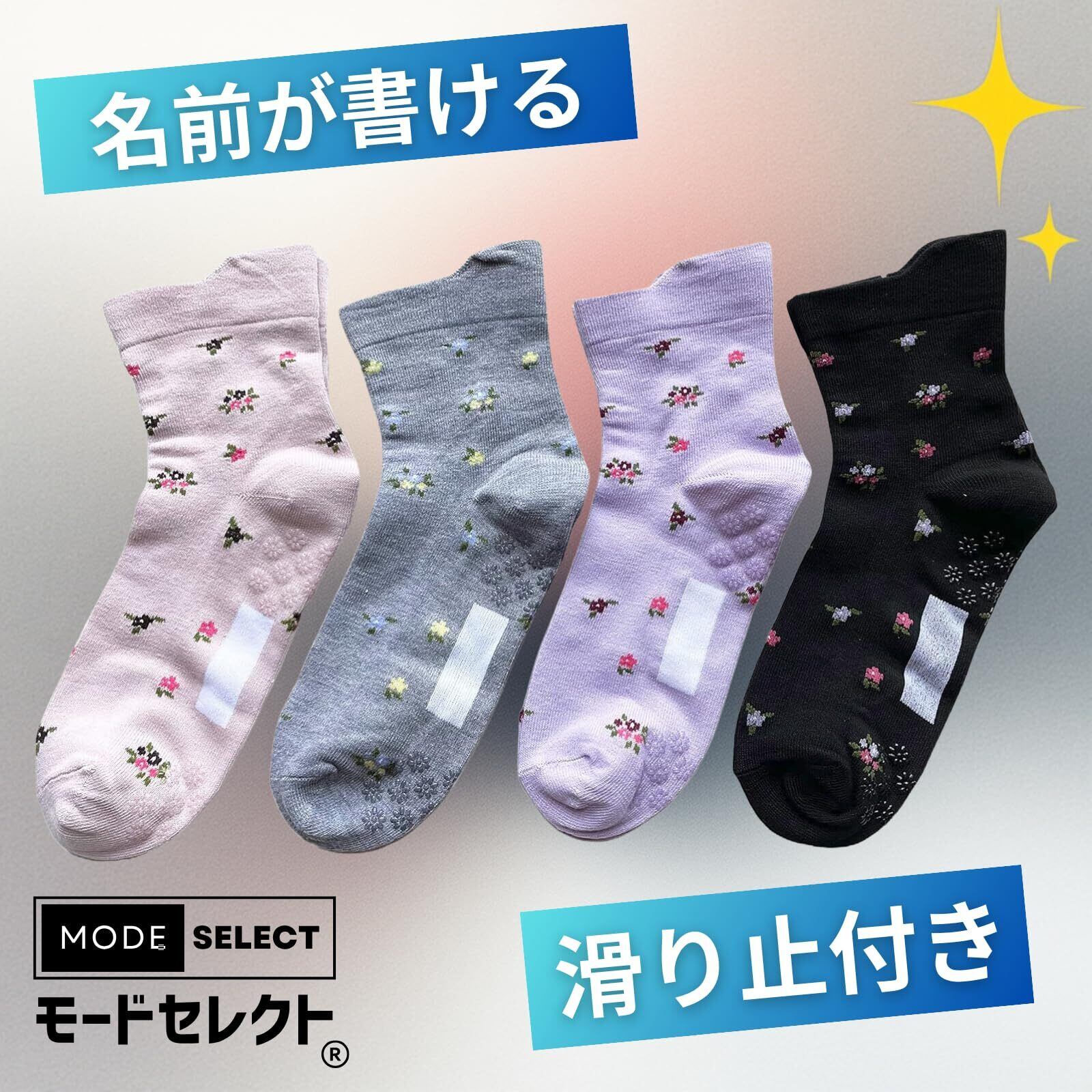 【在庫処分】ソックス レディース 滑り止め付 名前が書ける 片手で履ける 靴下 介護 かわい いおしゃれ 施設 病院 4足セット(色お任せ) C97