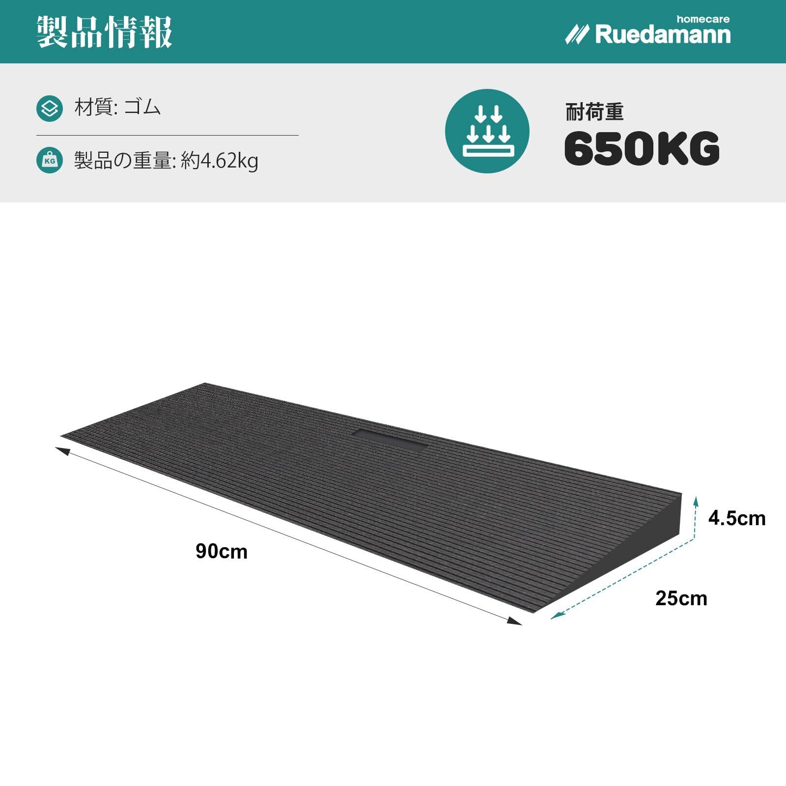 【数量限定】Ruedamann スロープ 段差スロープ 高さ4.5cm 耐荷重650kg 段差プレート 段差解消スロープ 車椅子スロープ ゴムスロープ 敷居スロープ 段差ゴムスロープ 道路 敷居 室内 浴室適用 裁断可能 バリアフリー