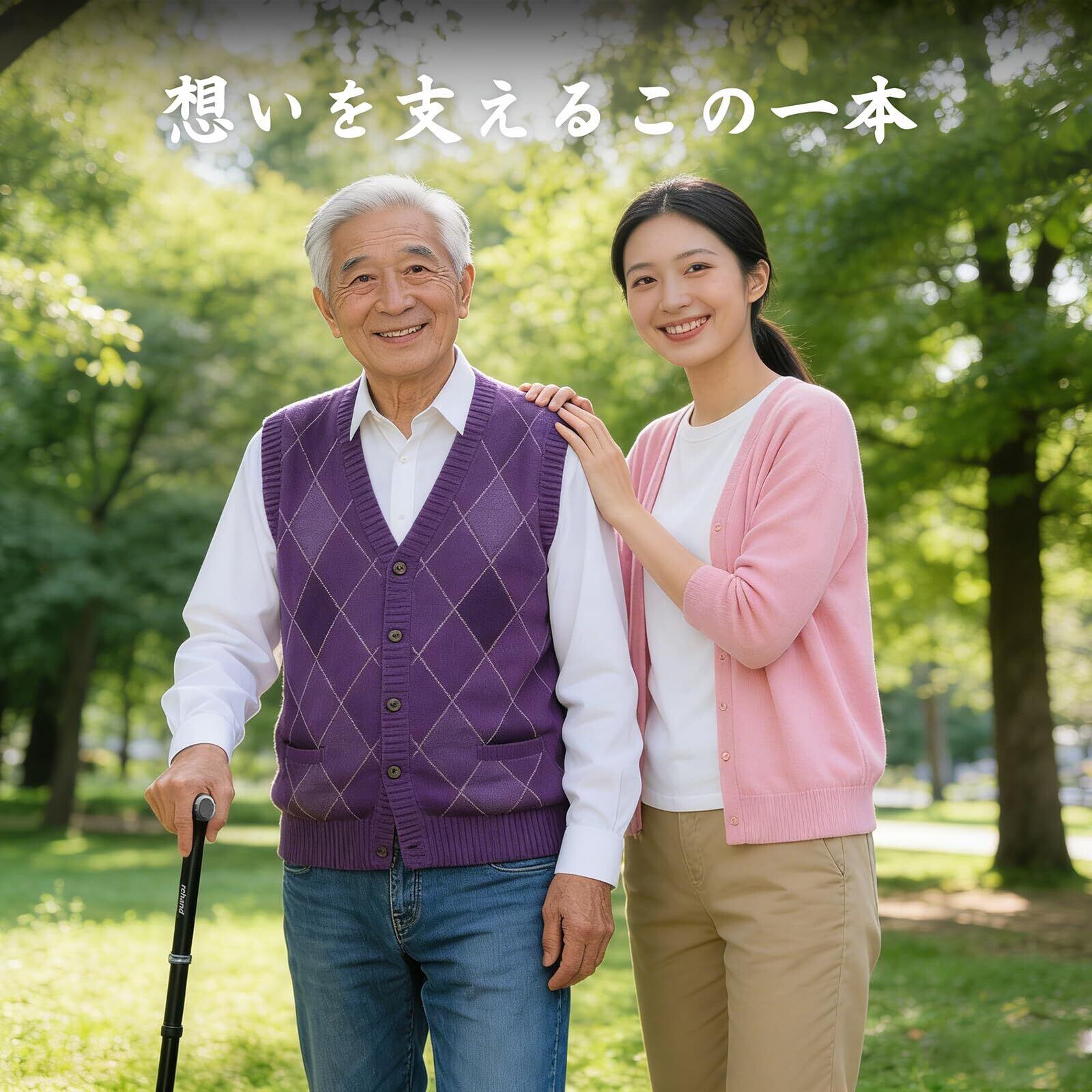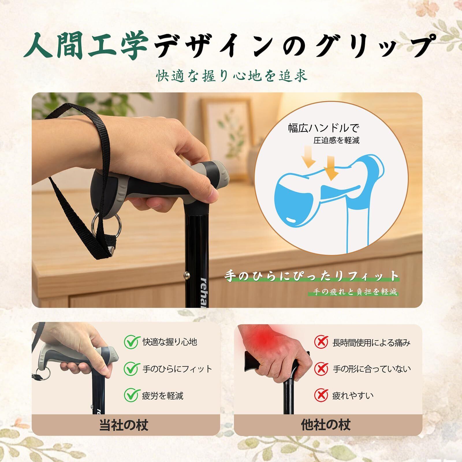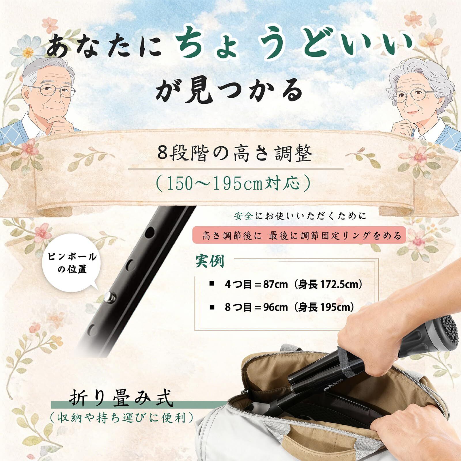 REHAND すべての地形の杖 - 折りたたみ杖 - 敬老の日・母の日・父の日プレゼント- 杖 男性用と女性用の8段階調節介護杖 - 高齢者用ステッキ - つえ