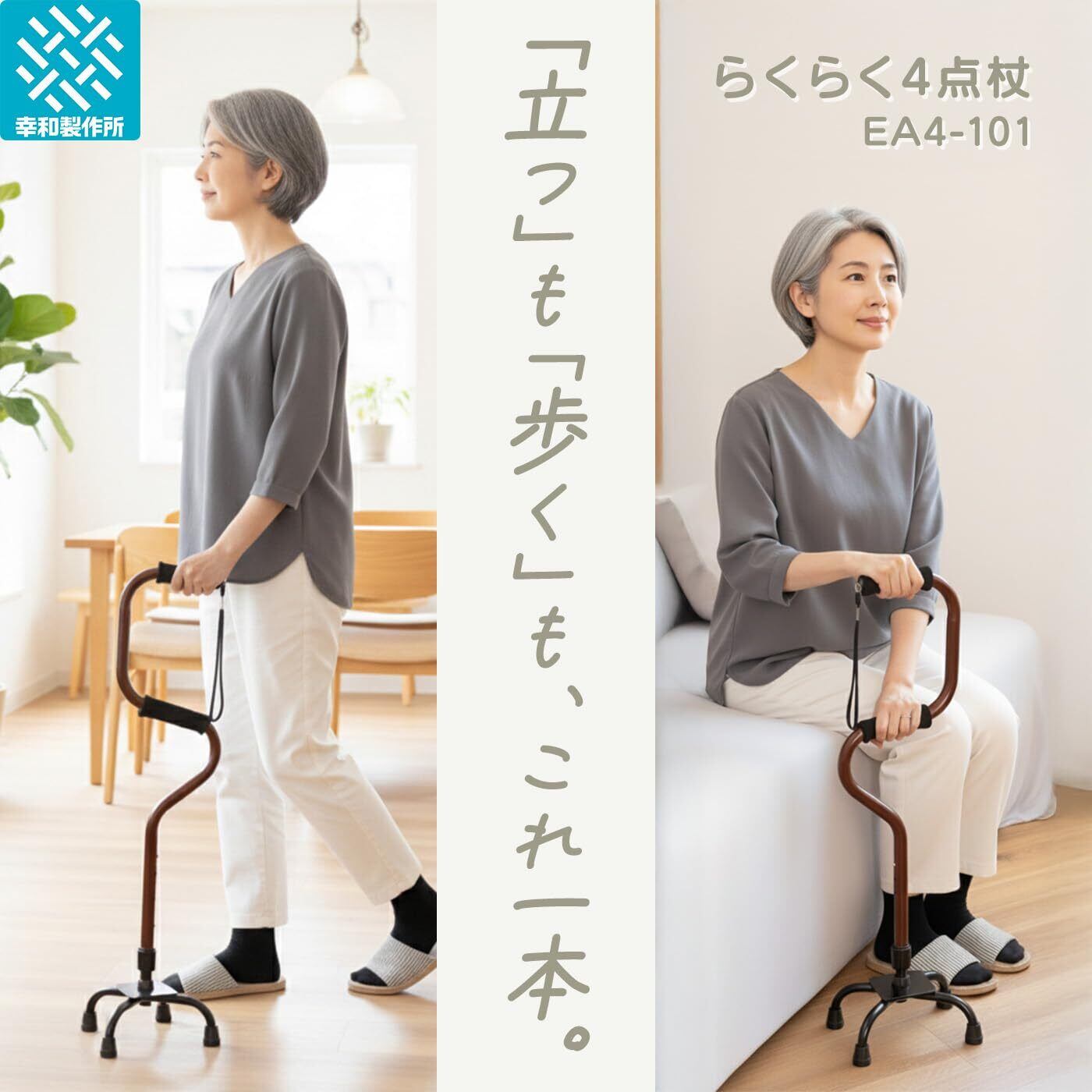 幸和製作所 らくらく4点杖 ブラウン EA4-101
