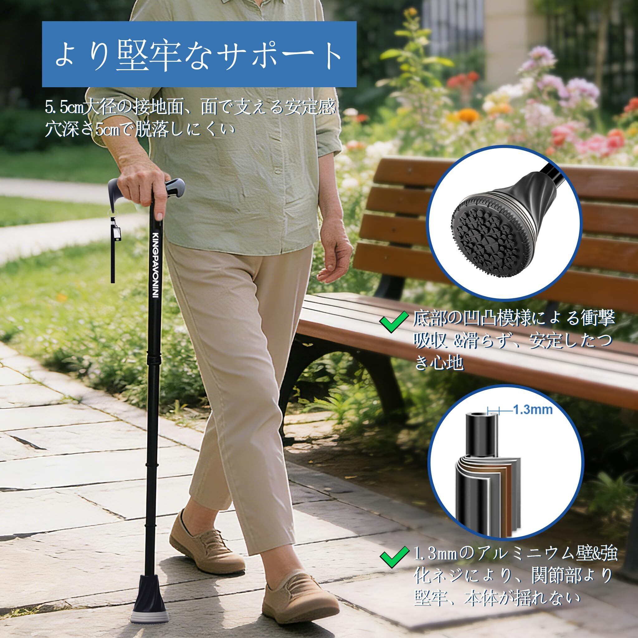 【2022最新】KingPavonini杖 女性用 男性用 折りたたみ杖 人間工学ハンドルステッキ 折り畳み 軽量 おしゃれ 高齢者