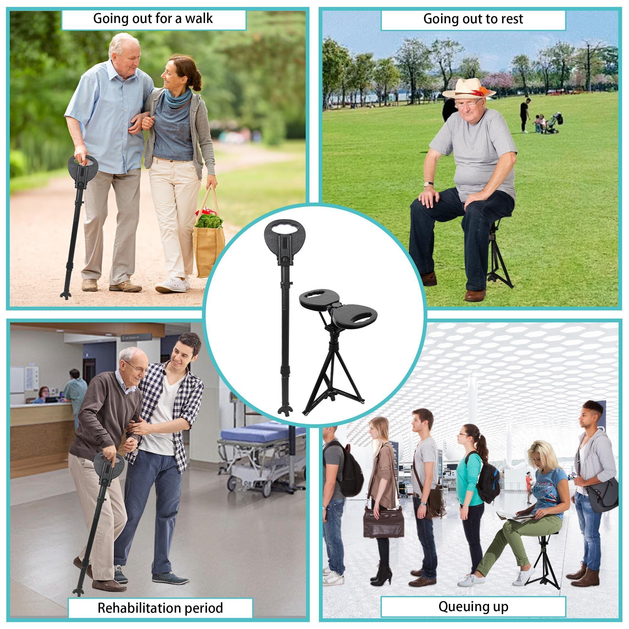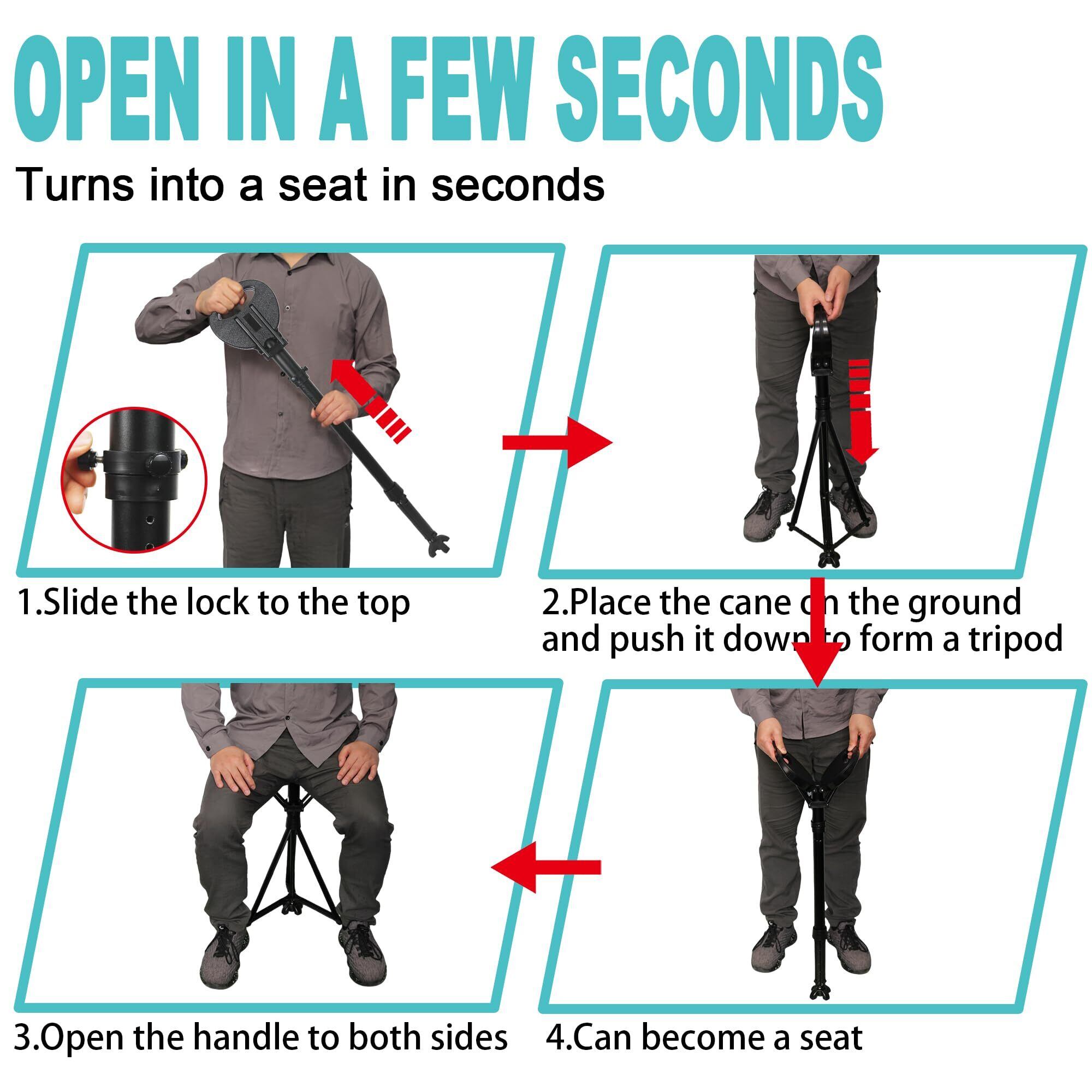 TAIWANBEDステッキチェア 折りたたみ杖 椅子になる杖 座れるステッキ アウトドア杖 3本脚安定性高い 祖父母 プレゼント 登山歩行支援ウォーキング 高齢者適用 歩行補助杖 旅行 遠足 スポーツ観戦 ゴルフ観戦 釣り 敬老の日