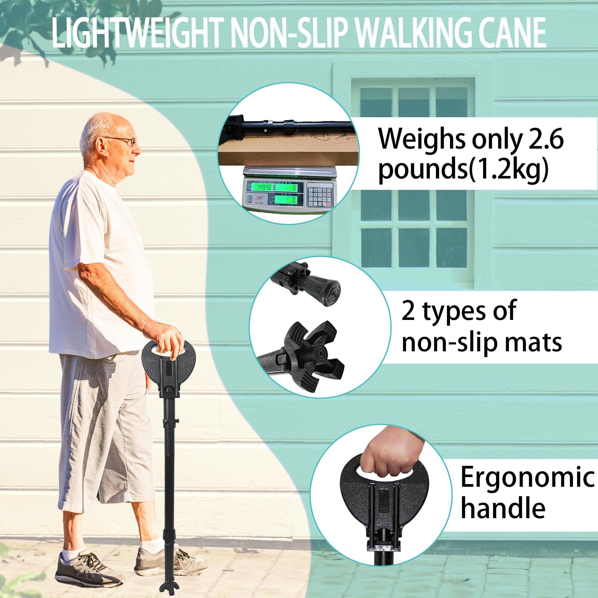 【滑り止め】高品質のゴム脚を採用。コンクリート、タイル、雨で濡れた歩道など、あらゆる地面条件下でもグリップ力が持続。転倒防止に優れ、階段や坂道でも安心してご利用いただけます。」