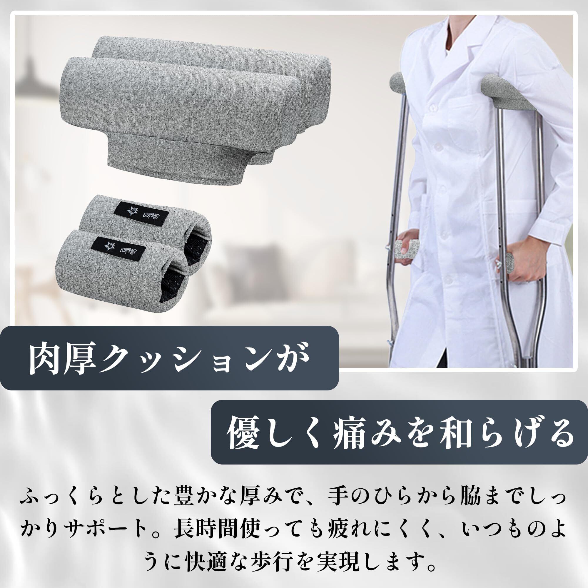 松葉杖 カバー 肉厚 クッション 痛み 軽減 クッションカバー 4個セット 持ち手ふかふか 滑り止め 付き 取り付け容易 洗える 松葉杖用パッド