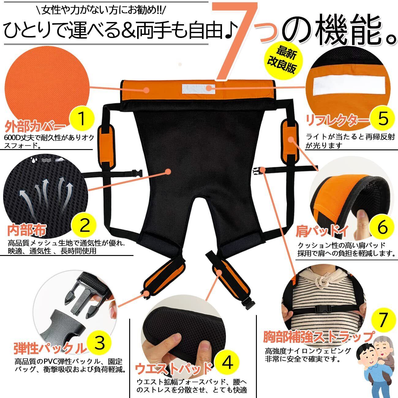 【最新改良版】《反射器》リフレクターで危険から身を守る》正面にリフレクター(反射板)があるので、暗い場所でも安心です。「高反発」素材を使用、ダイレクトに身体に伝わるベルトの食い込みを軽減させ、肩への負担を減らします。