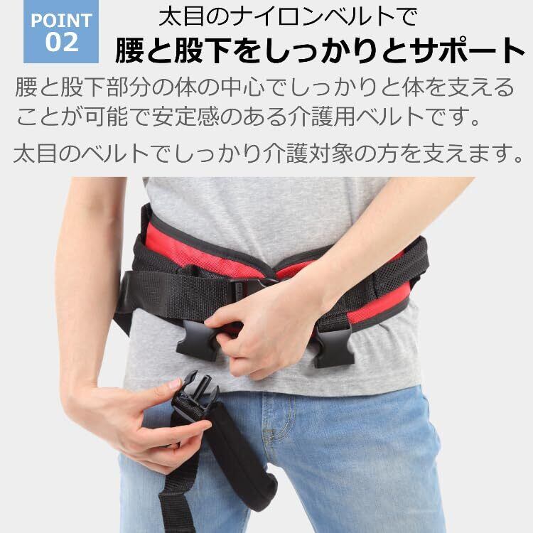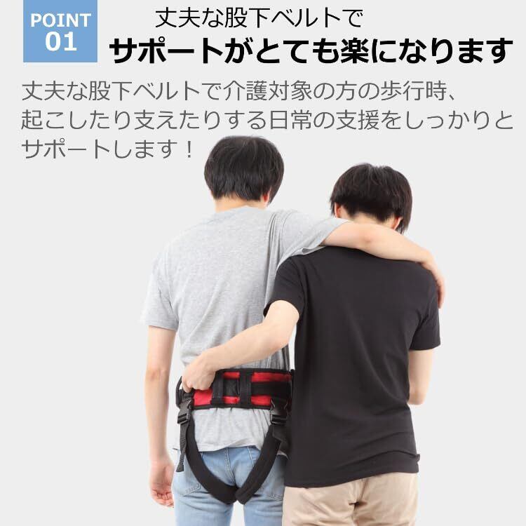 ①丈夫な股下ベルトで介護対象の方の歩行時、起こしたり支えたりする日常の支援をしっかりとサポートします! 介護者の日々のサポートがとても楽になります。