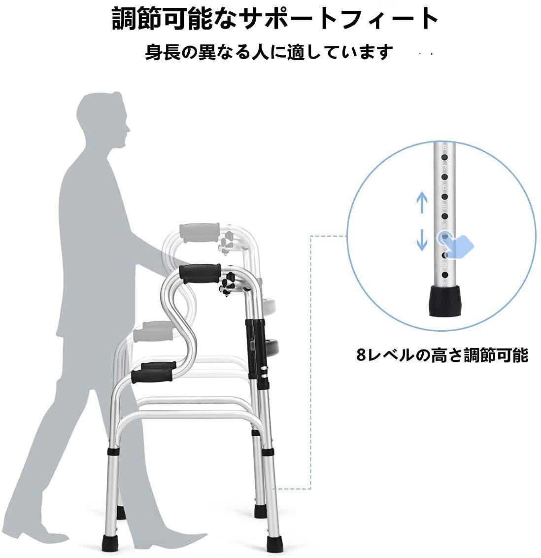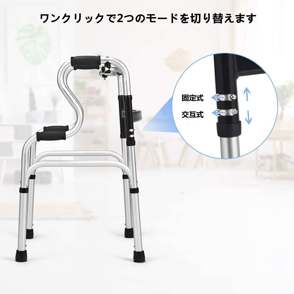 【人気商品】折りたたみ式歩行器 軽量アルミ歩行補助 高さ8段調節可能な大人用歩行器介護 直立型歩行補助器 高齢者歩行器 交互・固定2way式ほこうき大人用 室内