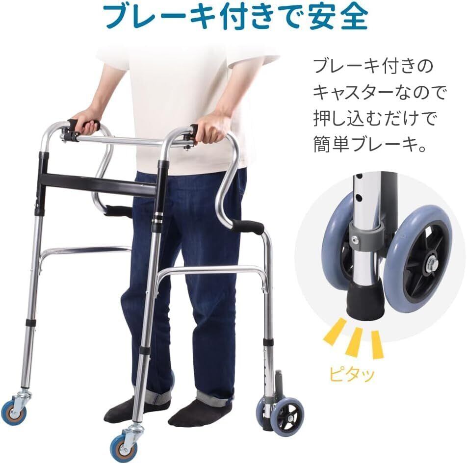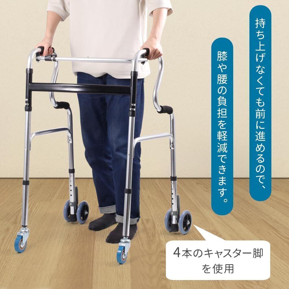 【数量限定】歩行器 折りたたみ キャスター付き コンパクト 軽量アルミ ラクに使える 高さ5段調節 室内外対応 高齢者 介護用 大人の歩行器 室内 室外 iimono117