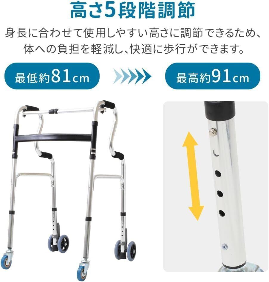 歩行器 折りたたみ キャスター付き コンパクト 軽量アルミ ラクに使える 高さ5段調節 室内外対応 高齢者 介護用 大人の歩行器 室内 室外 iimono117