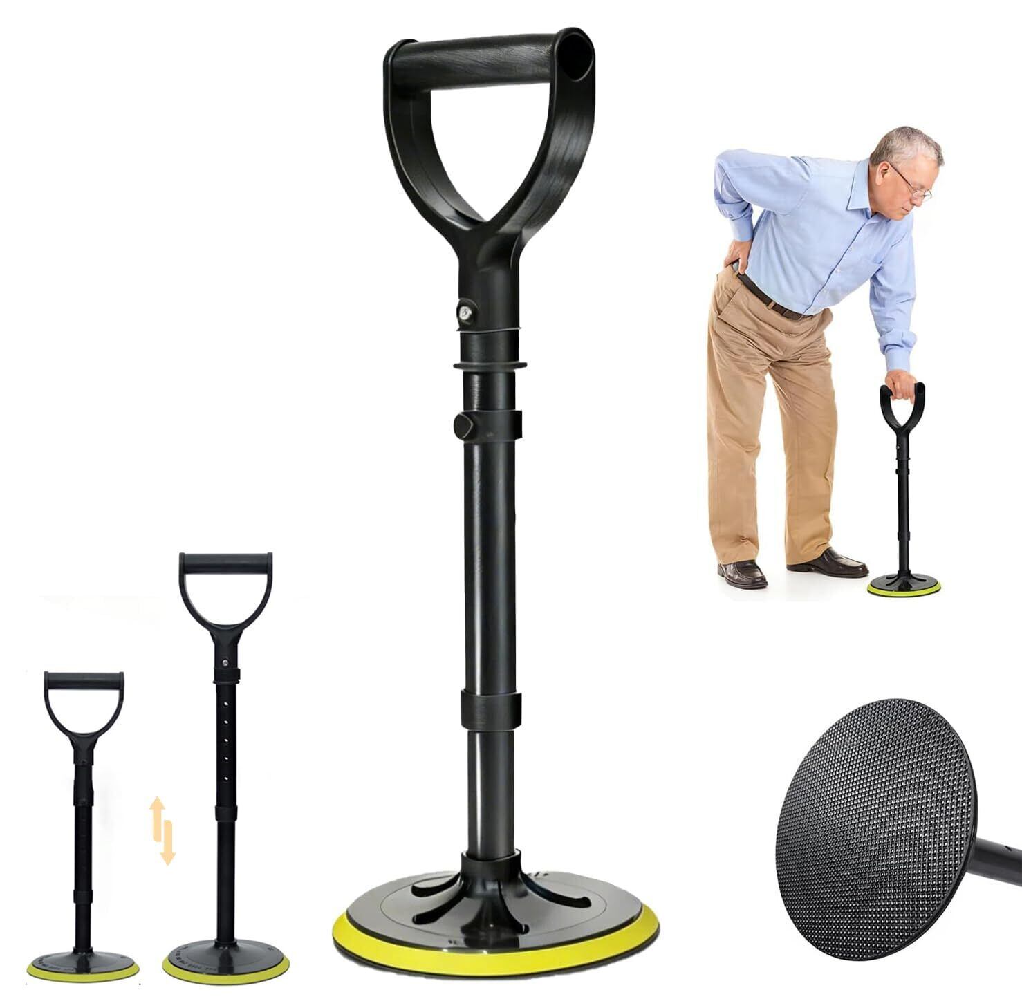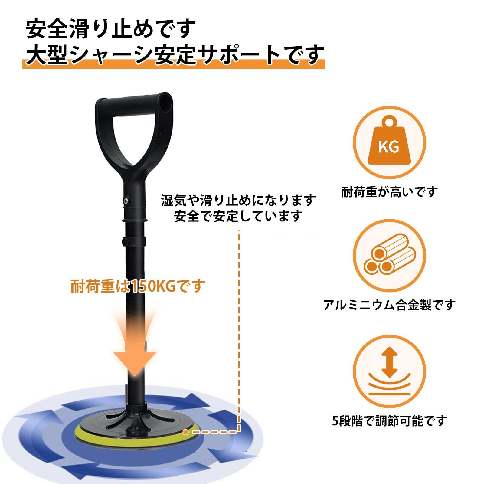 大型の滑り止め底座と滑り止めパターンにより、転倒リスクを低減。高さは 5 段階 (42cm~52cm) に調整可能で、身長約 150cm~165cm の高齢者に適しており、身長や使用シーンに応じた最適なサポートを提供する移動補助ツールです。