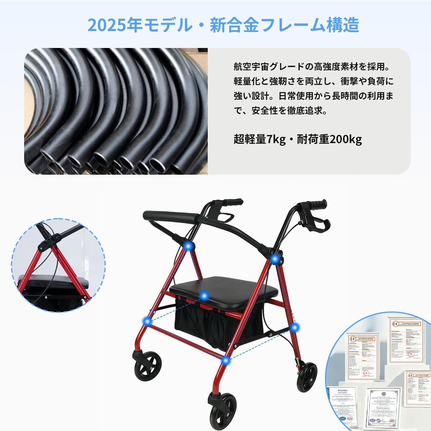 【在庫処分】Nijakise 歩行器 シルバーカー 高齢者用 超軽量 室内 屋外 座れる 手押し車 耐荷重200kg 高さ調節可能 折り畳み シルバーカー ブレーキロック機能付き 老人 四輪歩行車 歩行補助 買い物カゴ付き