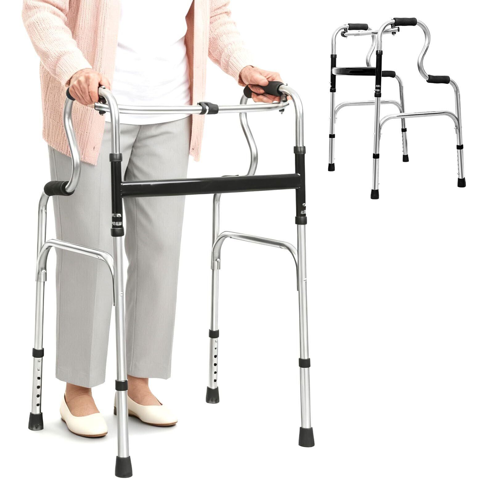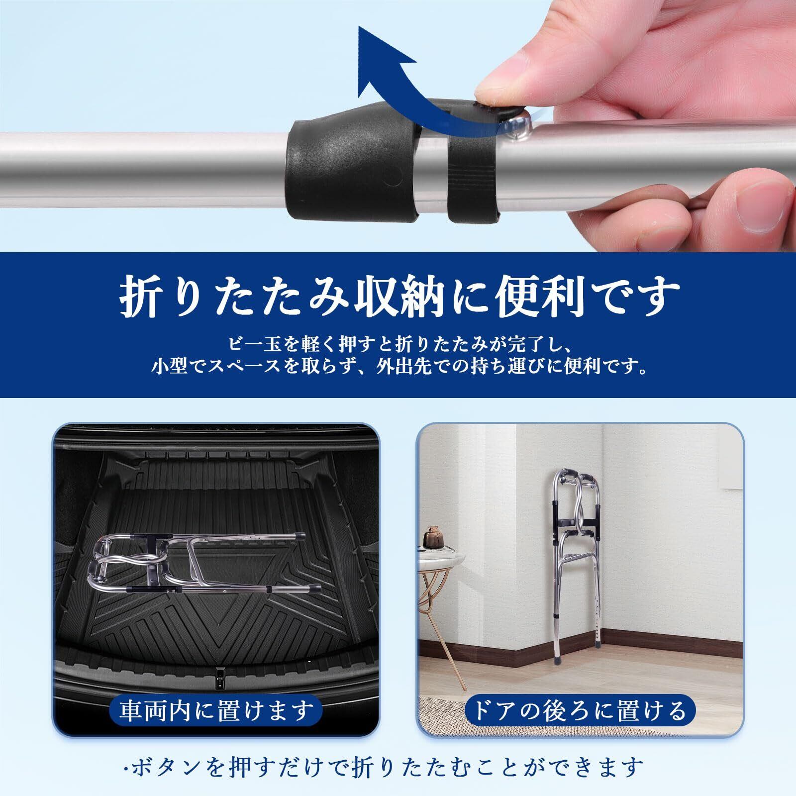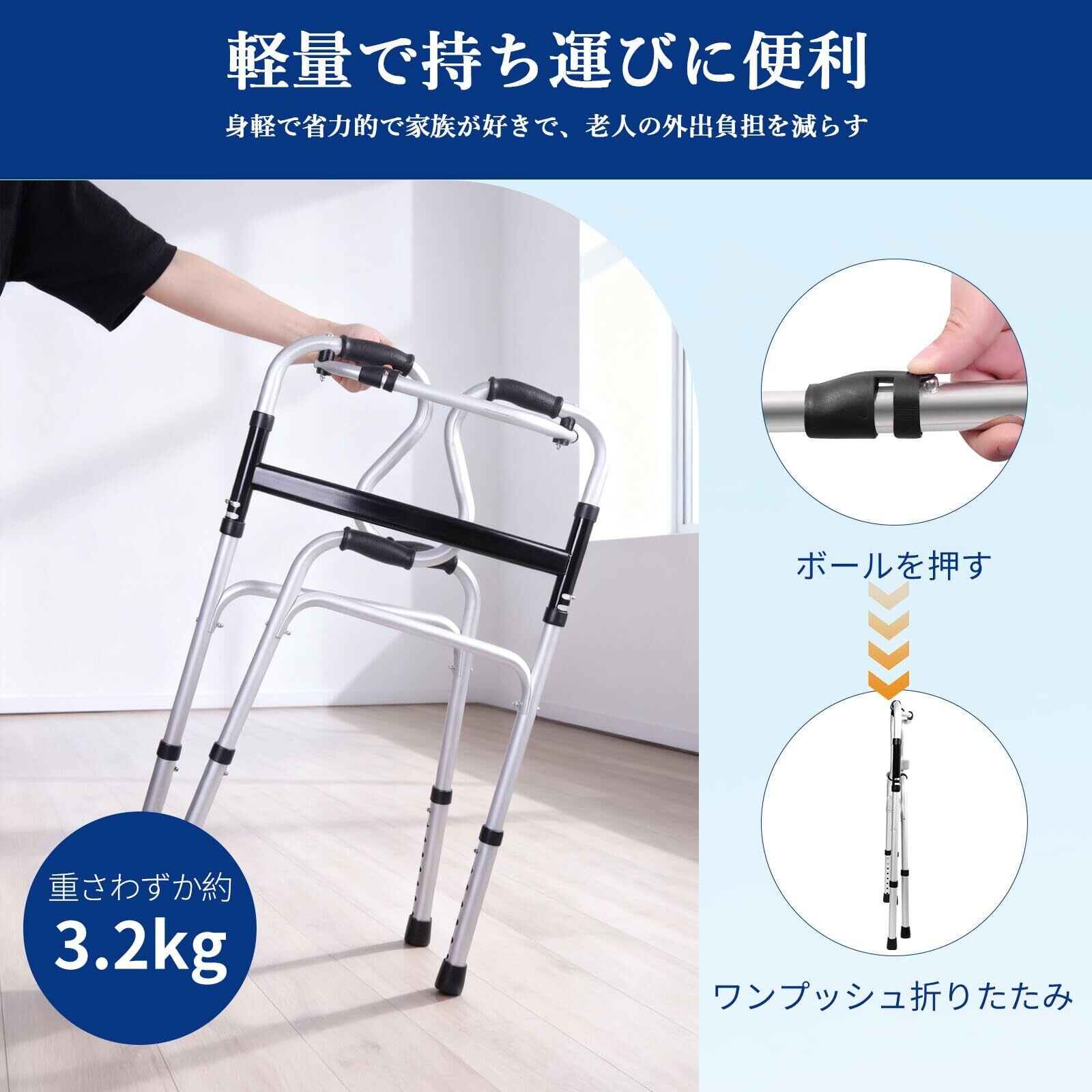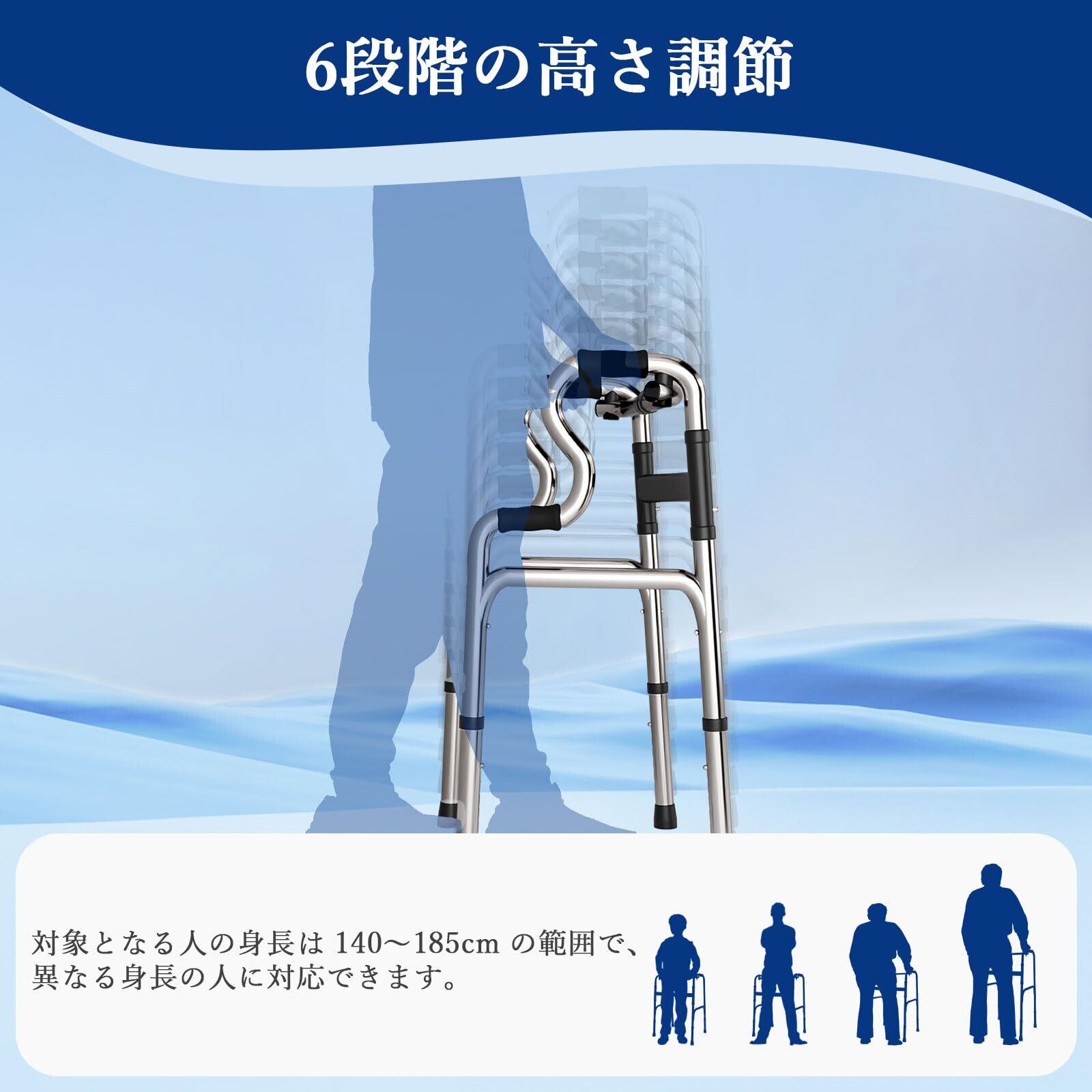折りたたみ式歩行器 介護用 直立型 歩行補助 高齢者用 屋内外兼用 6段階高さ調節 軽量ステンレス製 介護用品 (シルバ-1)