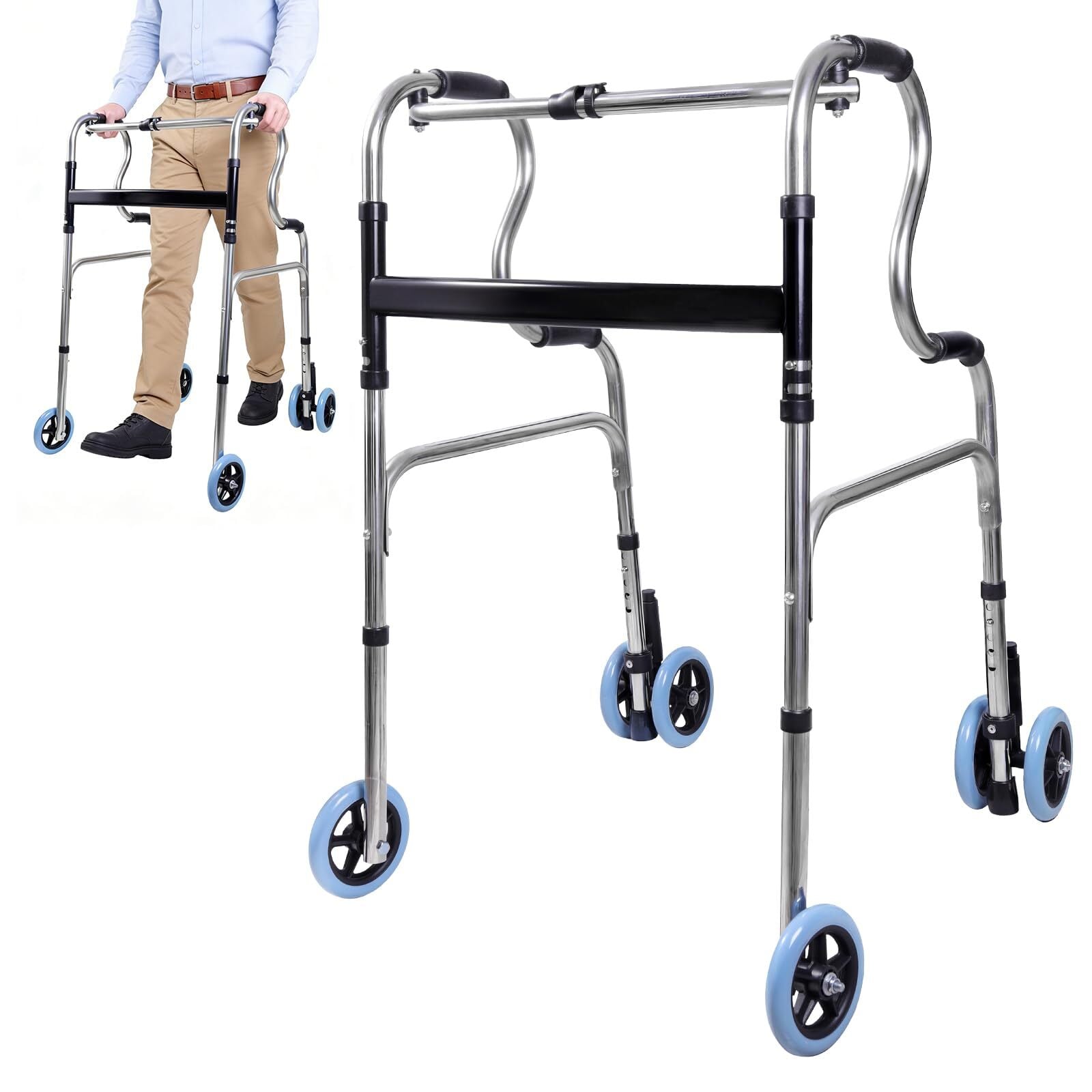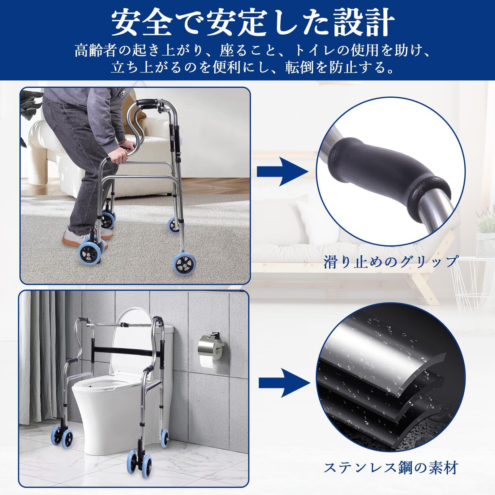 【新着商品】歩行器 高齢者用 室内 屋外兼用 交互 固定 2way キャスター ブレーキ付き 軽量 コンパクト 折りたたみ 高さ調節可能 ステンレス製 立ち上がり補助 介護用 リハビリ 組立不要