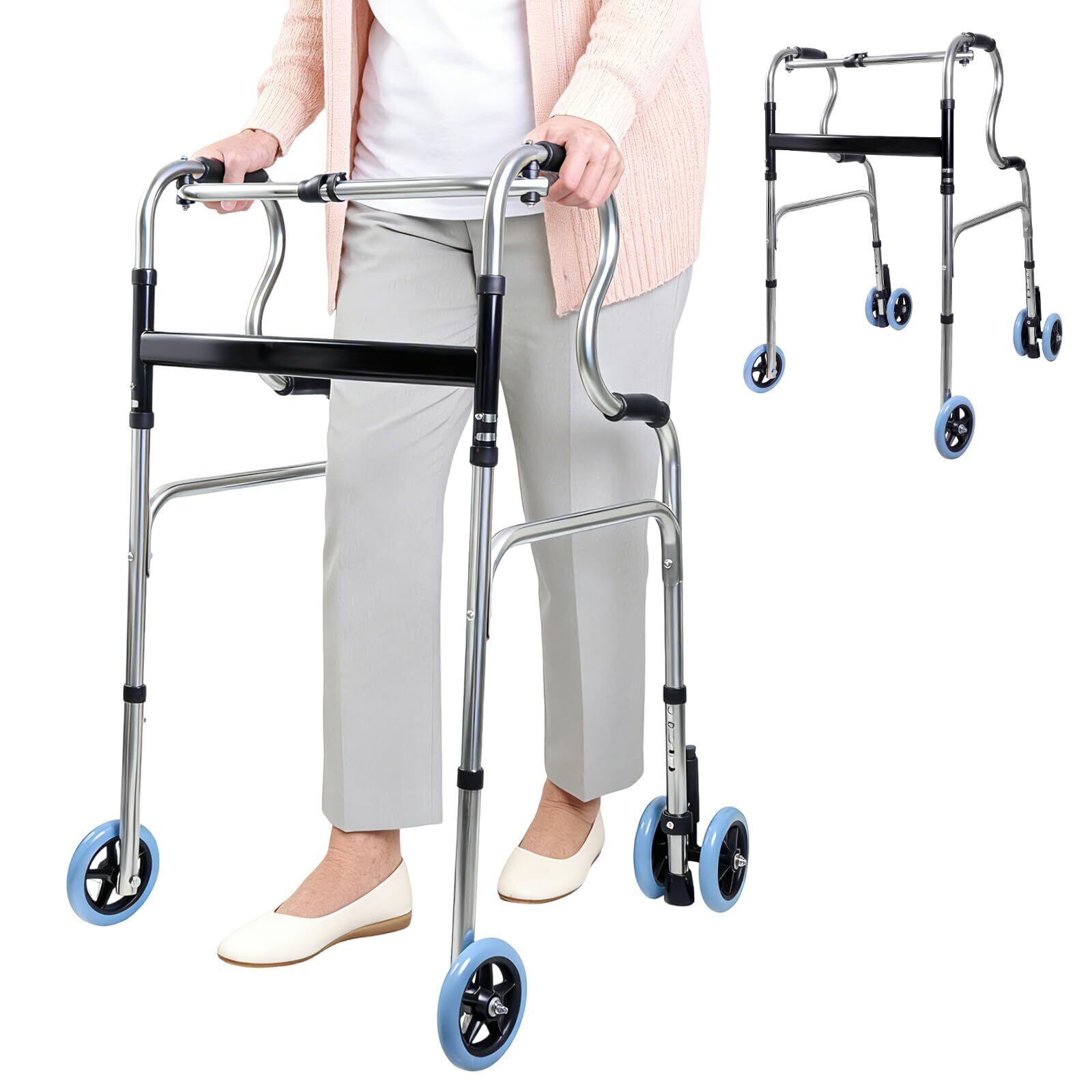 Lefeke 歩行器 高齢者用 室内 屋外兼用 2way交互式 固定式 キャスター付き ブレーキ 軽量 折りたたみ コンパクト 高さ調節 ステンレス製 歩行補助 立ち上がりサポート 介護用 リハビリ 組立不要